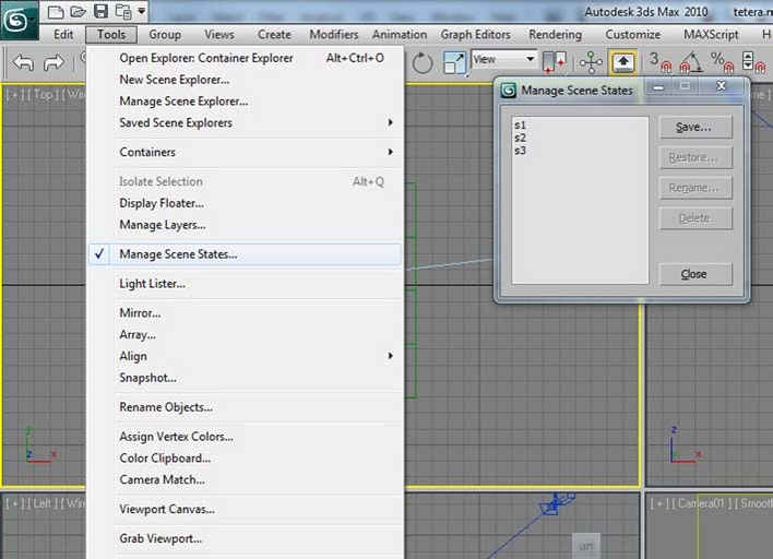 Para generar una scene state seguimos el menú Tools/Manage Scene States, el cual nos permite añadir, modificar y eliminar estados.