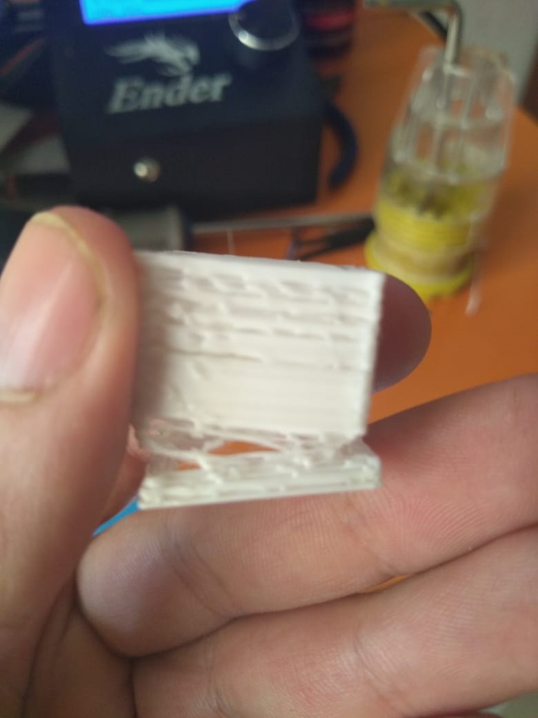 Creí que el problema era del extrusor(porque vi que no extruia suficiente material o faltaba para completar la pieza), entonces desajusté un tornillo y tuve mejores resultados, pero sigue imprimiendo mal.