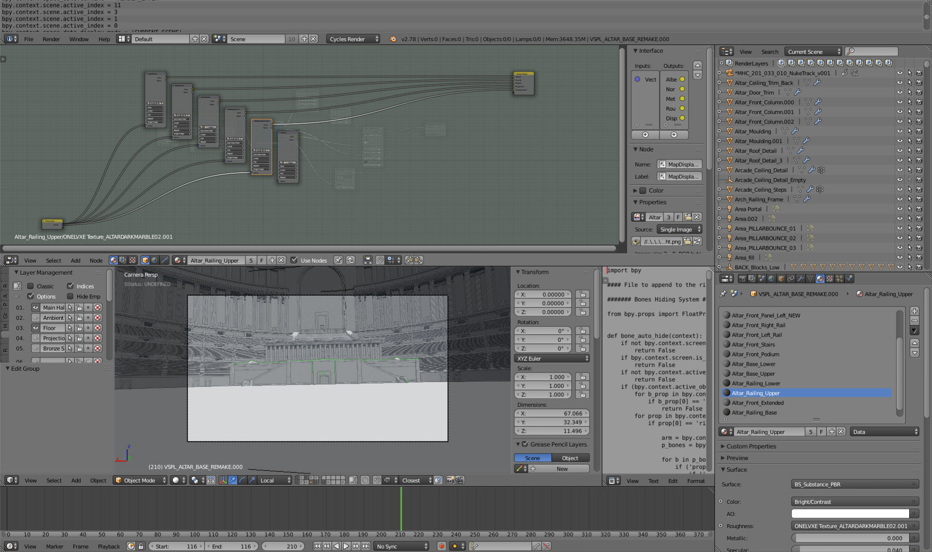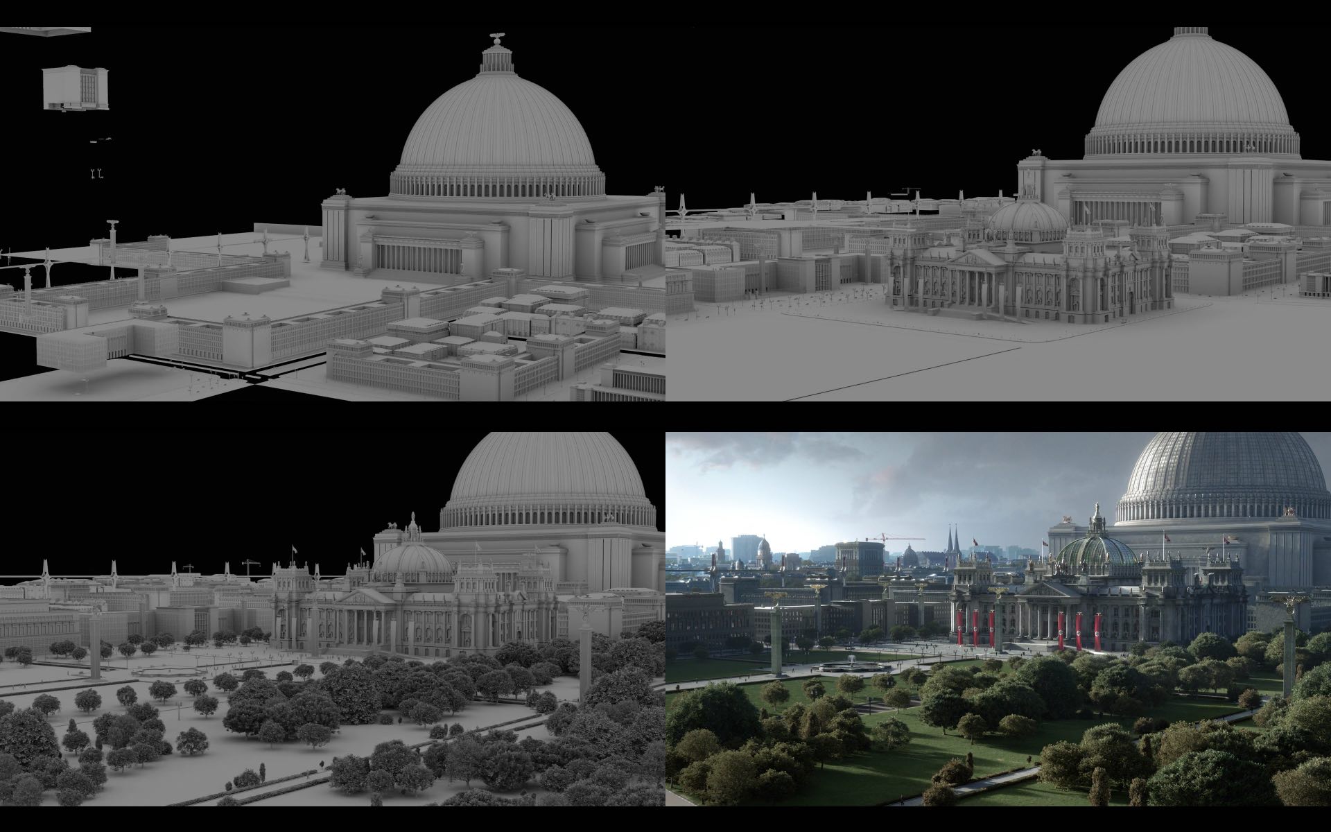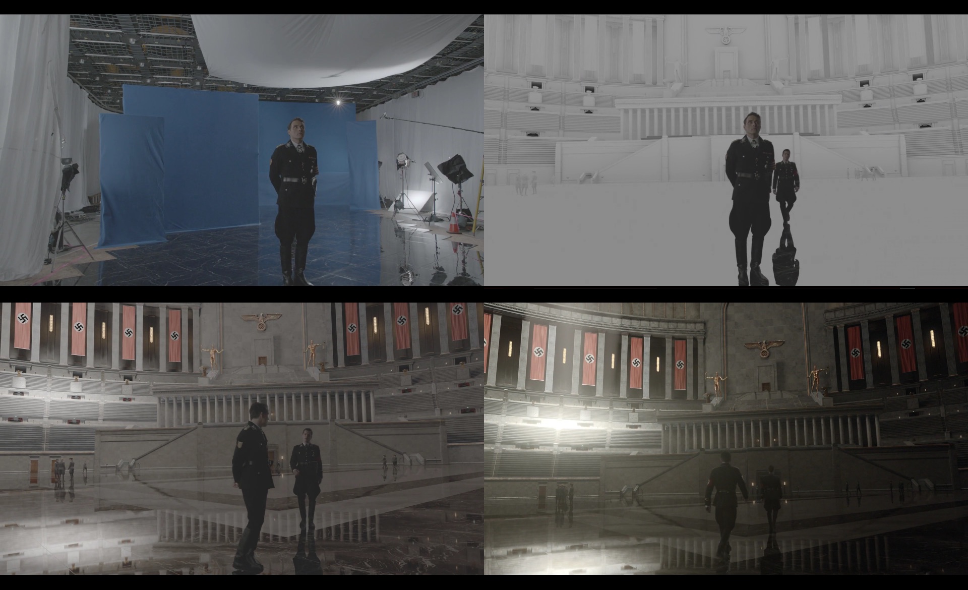 Pero como decimos, para el grueso del trabajo 3D, utilizaron Blender, esto es algo inusual en compañías de efectos visuales si miramos solo hacia Estados Unidos, pero este tiene una serie de características que lo convirtieron en el preferido para crear los efectos visuales de el hombre en el castillo. Uno de ellos fue el motor de render, Cycles, utilizado para renderizar la mayoría de las escenas, además dada la enorme necesidad de render, este estaba configurado para procesarse en la nube, utilizando los propios servidores de Amazon, lo que permitió tener hasta 150 máquinas trabajando a la vez para renderizar las grandes secuencias.