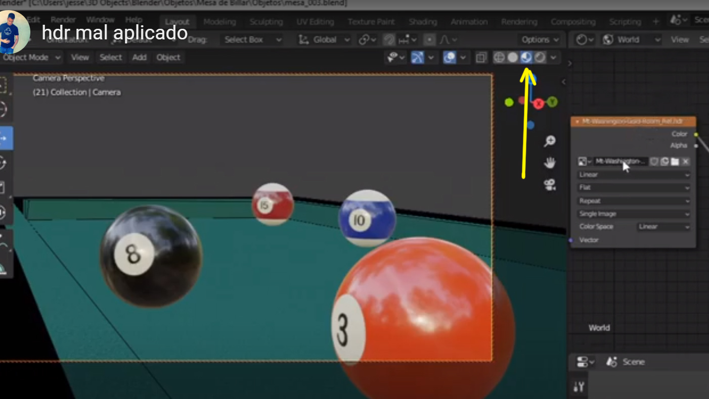 Y luego aclarar una cosa, cuando estás en el Material Shading lo que se ve en el visor, no es lo que saldrá en el render, pues este visor, tiene una imagen HDR suya propia, que no tiene por que estar en la escena; si quieres ver el render final en el visor, has de elegir la de Rendered que es lo más cercano al render final. (También tiene algunas limitaciones, como con las partículas, etc).
