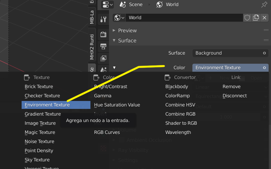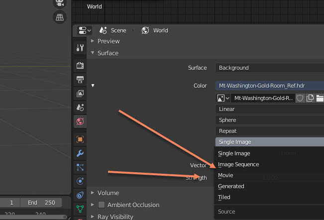 Cuando añades ese tipo de imágenes HDR al World se hacer por Environment Texture.