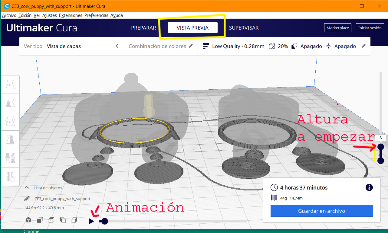 Por otra parte me gustaría saber como poder visualizar el extrusor en el programa cura y poder ver la simulación del movimiento de la impresora, no sé si será alguna configuración que no consigo encontrar o que me falta algún plugins que igualmente no consigo encontrar.
