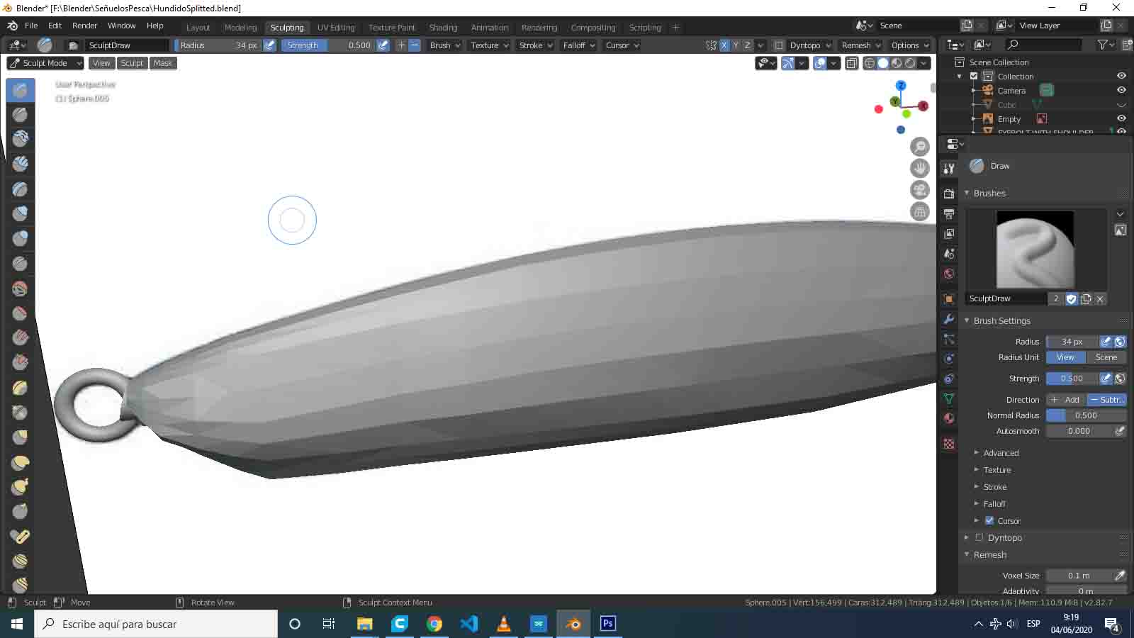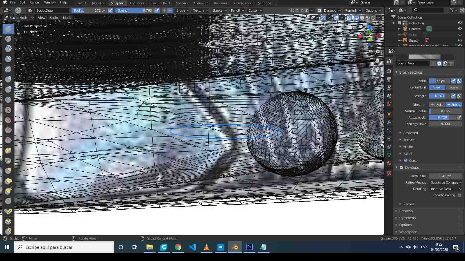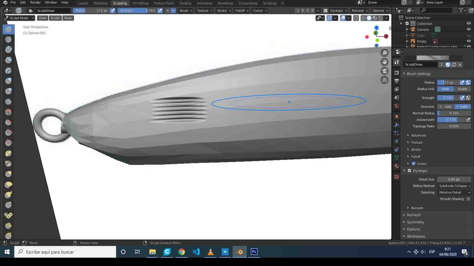 En el modo esculpir, necesito hacer un trazo, pero la herramienta solo hace un trazo ovalado, dejo las fotografías por que se que me explico horriblemente mal.