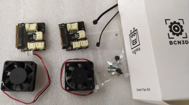 - Placas de comunicación y ventiladores laterales para los cabezales de extrusión de una sigma bcn3d. (40€)