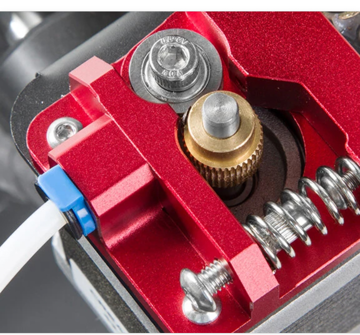 El muelle debe presionar sobre la rueda dentada, que es la que mueve el filamento.