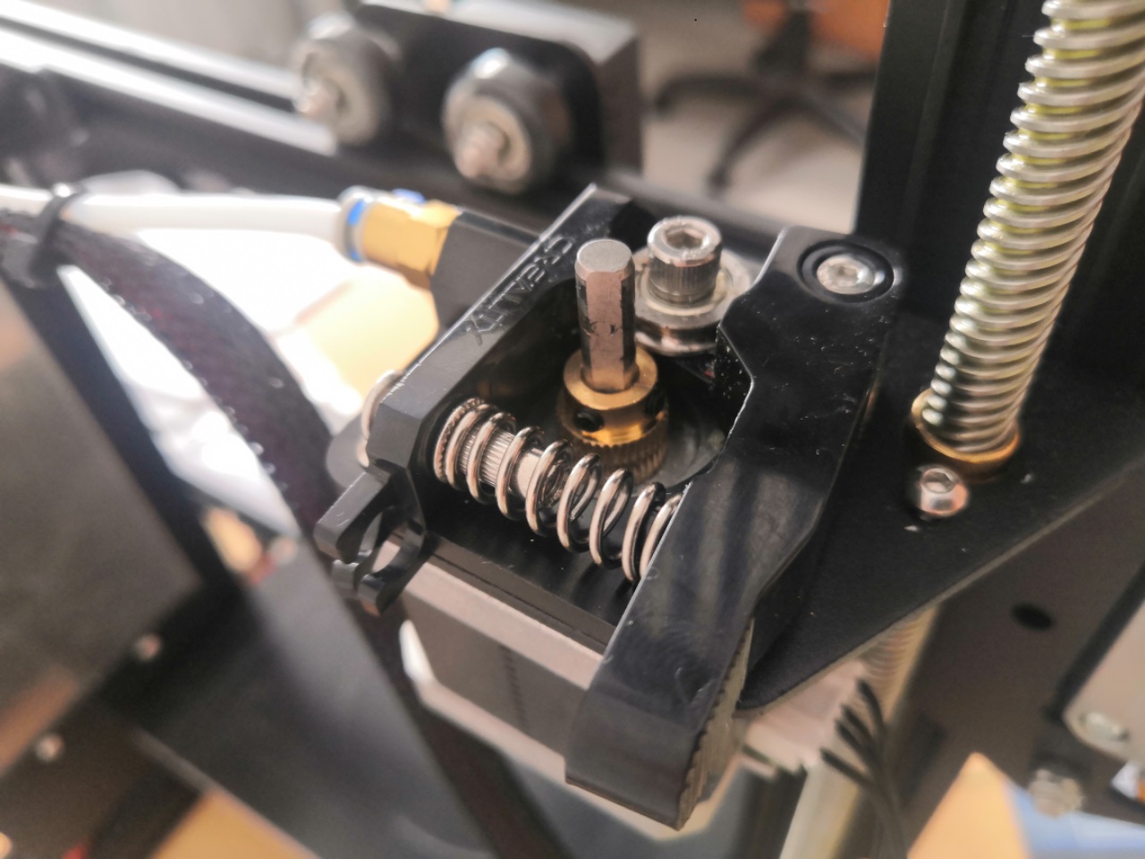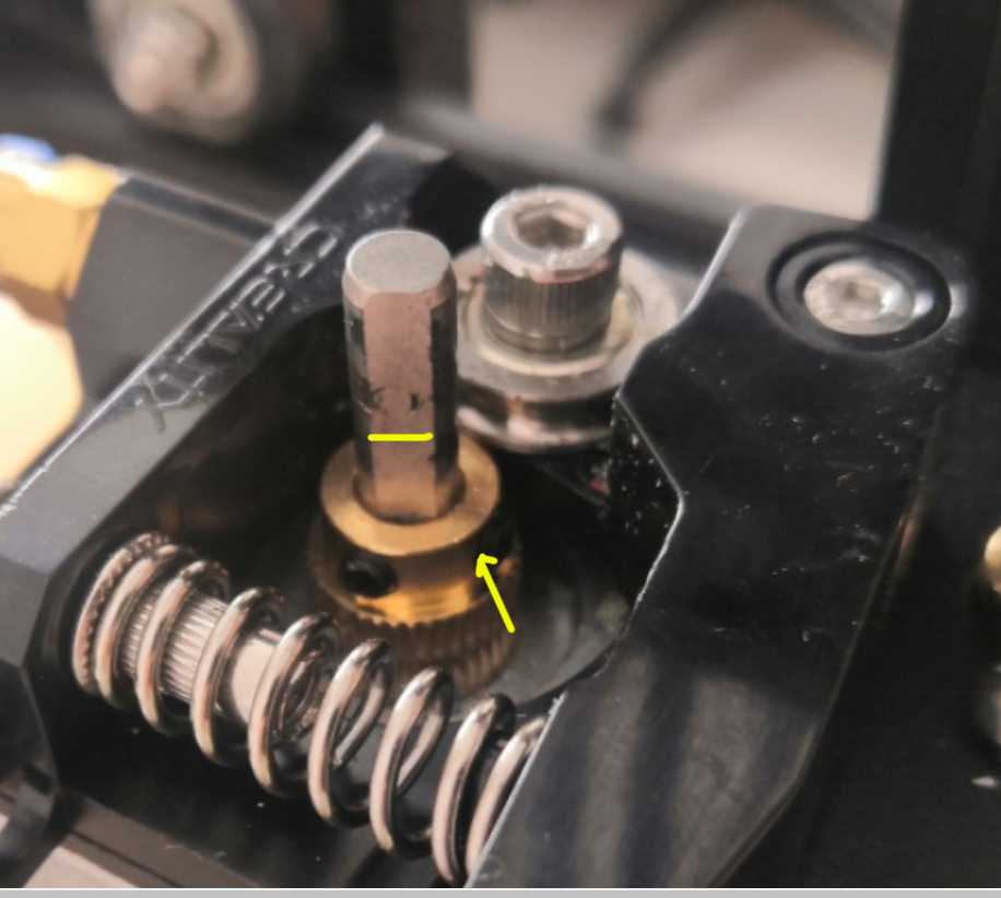 Intentaré arreglarlo, aunque no sé bien cómo hay que colocar esta rueda, o no tiene nada por debajo o se ha roto alguna pieza. Espero no tener que desmontar todo el extrusor.