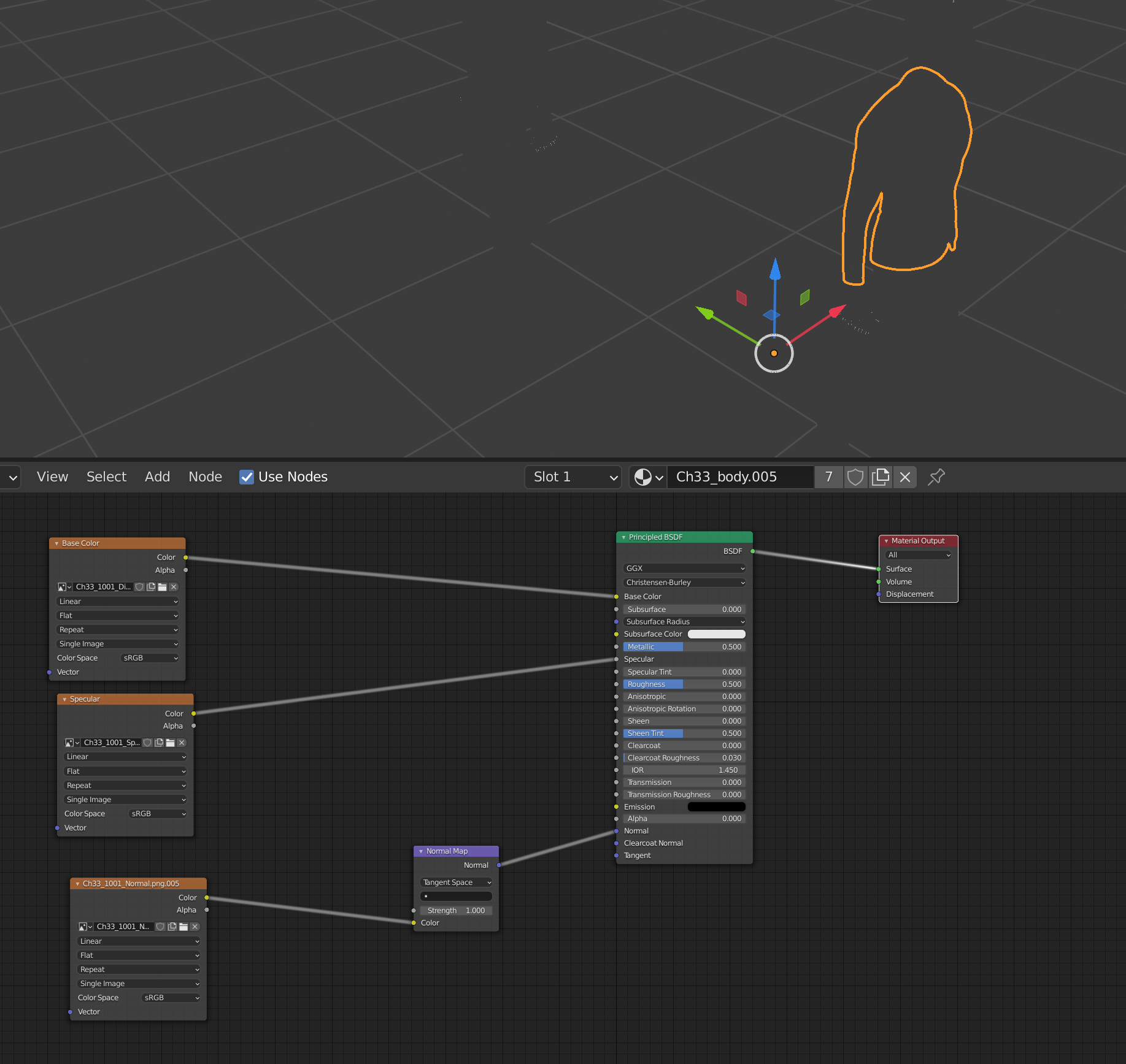 El modelo es un archivo DAE creado en Mixamo, y las texturas las he tenido que configurar a mano.