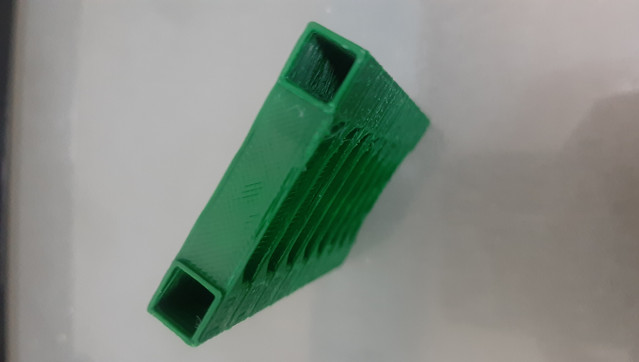Lo que sucede es que no logro hacer una impresión correcta debido a que imprime terriblemente mal. Ya calibré los pasos del motor extrusor, también el flujo, para que logre tener los 0.3 milímetros, he tenido que ponerlo a 89 por ciento de flujo, porque si lo pongo a más, imprimiendo el clásico sin techo ni base y con 2 paredes (o sea 0.6 milímetros) si le subo a más flujo, sobrepasa los 0.62 milímetros, con 89 por ciento he logrado tener 0.6 en una de las paredes y en otra 0.59 milímetros.