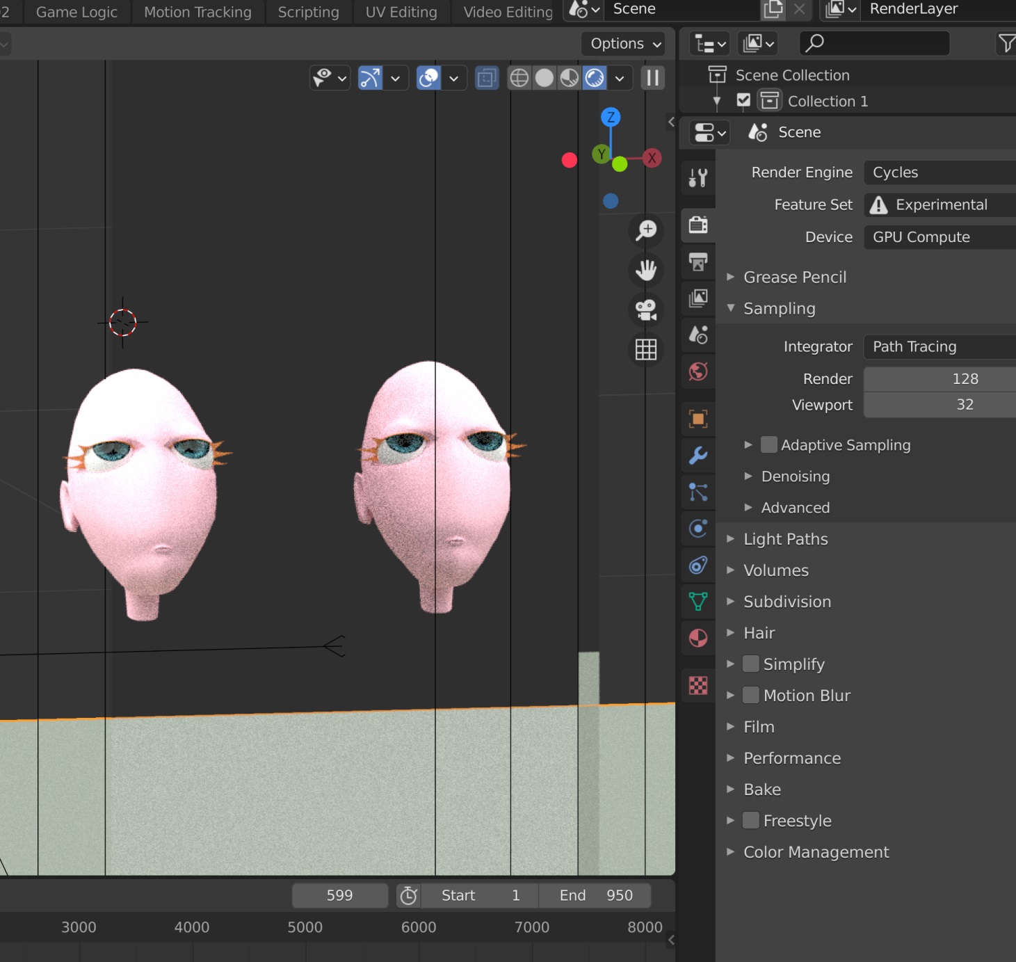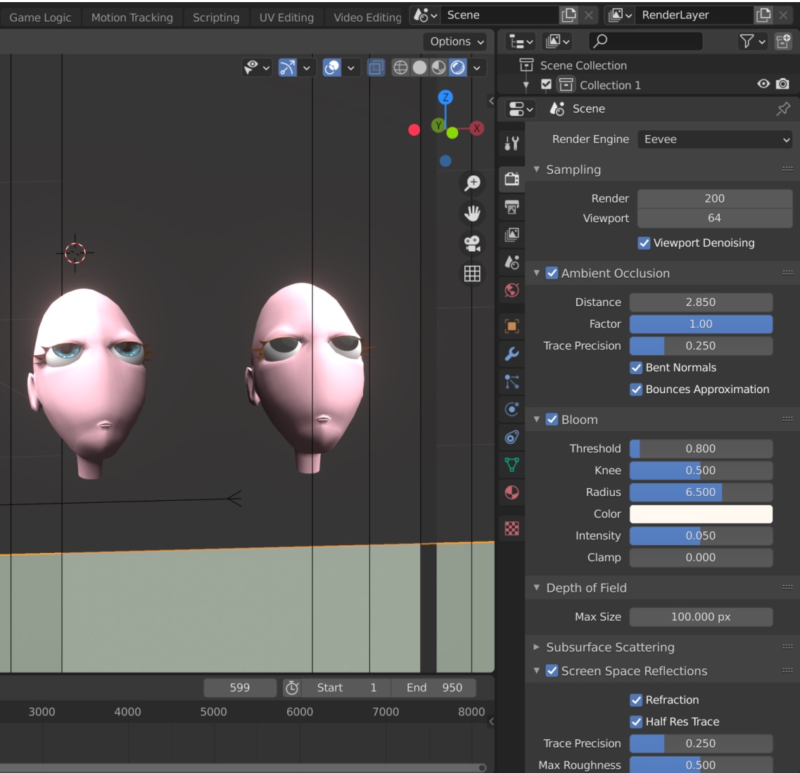 La cuestión es que la reflexión en el modelo se realiza correctamente en Cycles, pero en Eevee sin embargo no hace la reflexión de los ojos, por su puesto tampoco lo realiza en el renderizado.