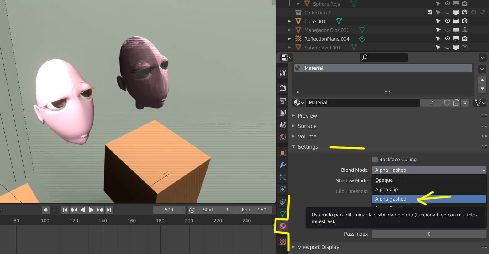 Reflexión de ojos en espejo con Cycles y EEVEE