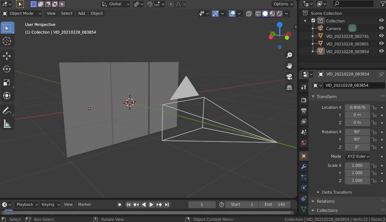 Buen día a todos. En Blender importé como planos tres videos verticales para renderizarlos en horizontal.