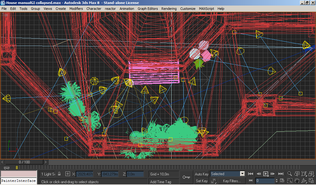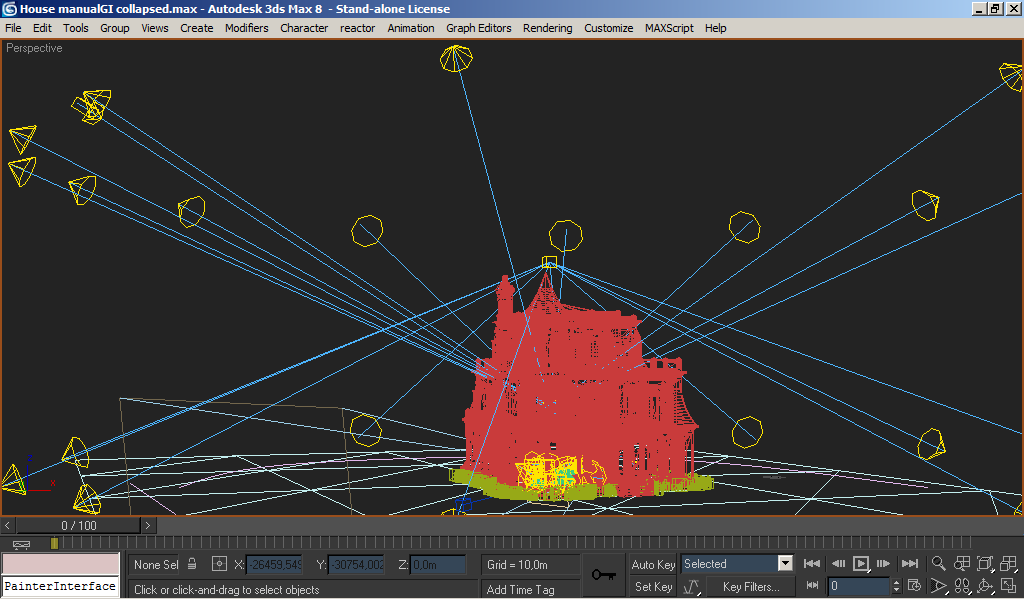 En esta escena, la intensidad de GI se sube y se baja desde el multiplicador de cualquiera de los spots, pues todos están instanciados.