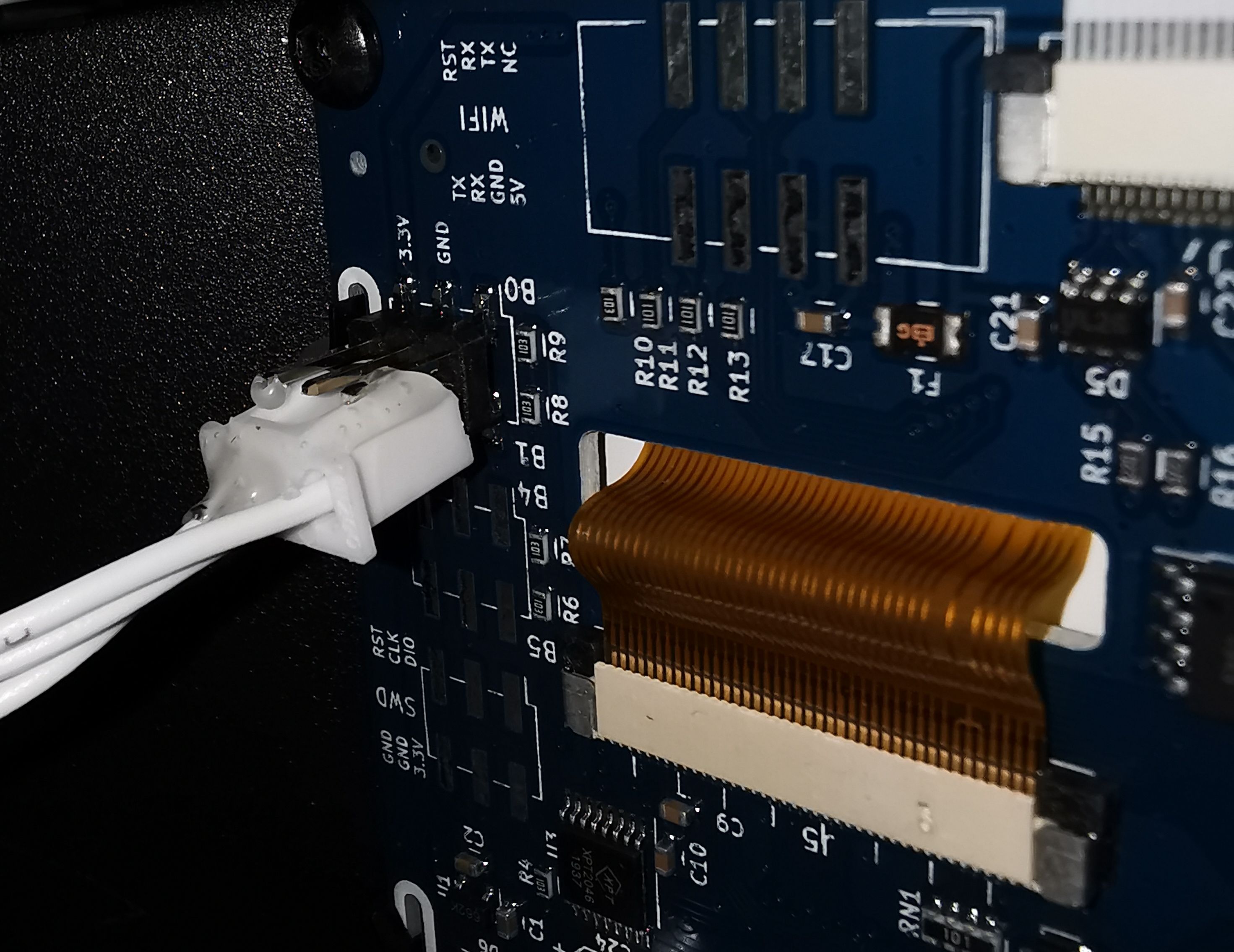 A la hora de desconectar la pantalla TFT he interpretado mal unas instrucciones que he encontrado en YouTube y he desconectado un conector con cables blancos que está a la izquierda del todo de la placa del TFT.