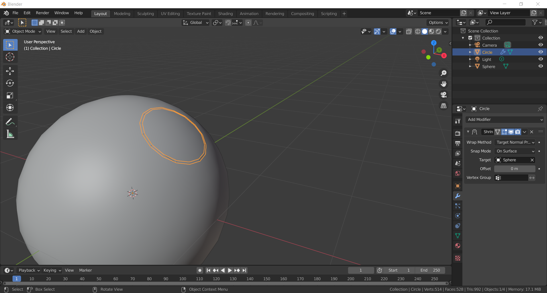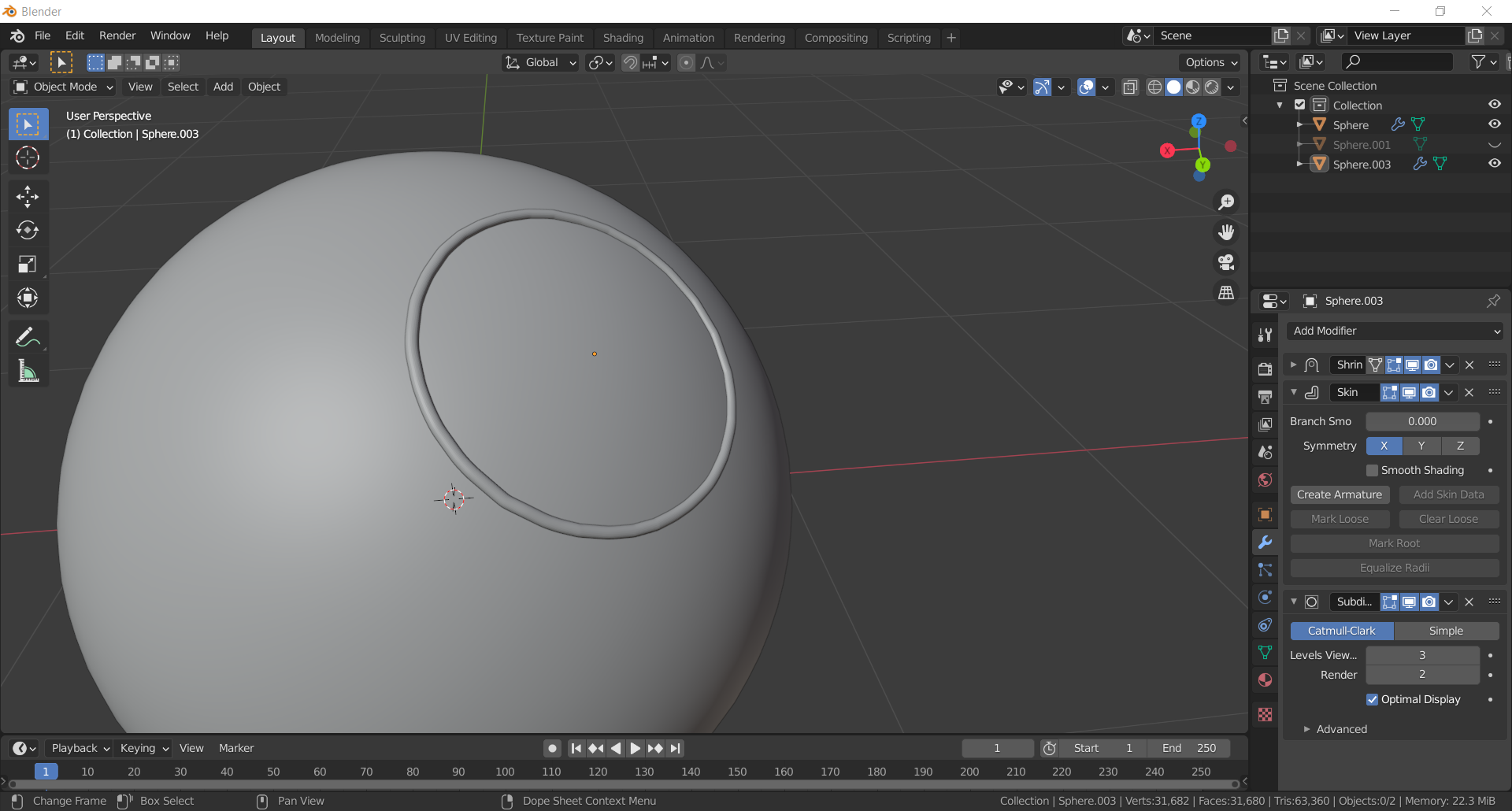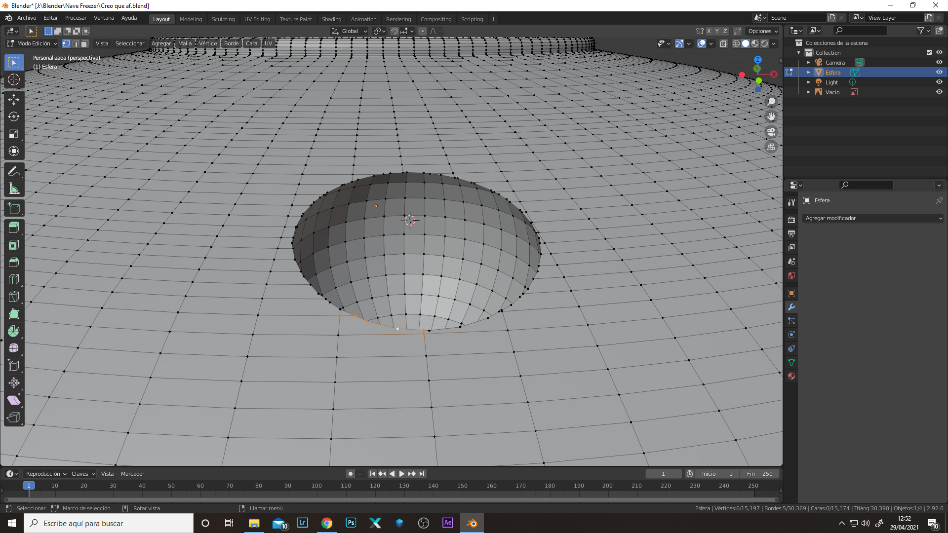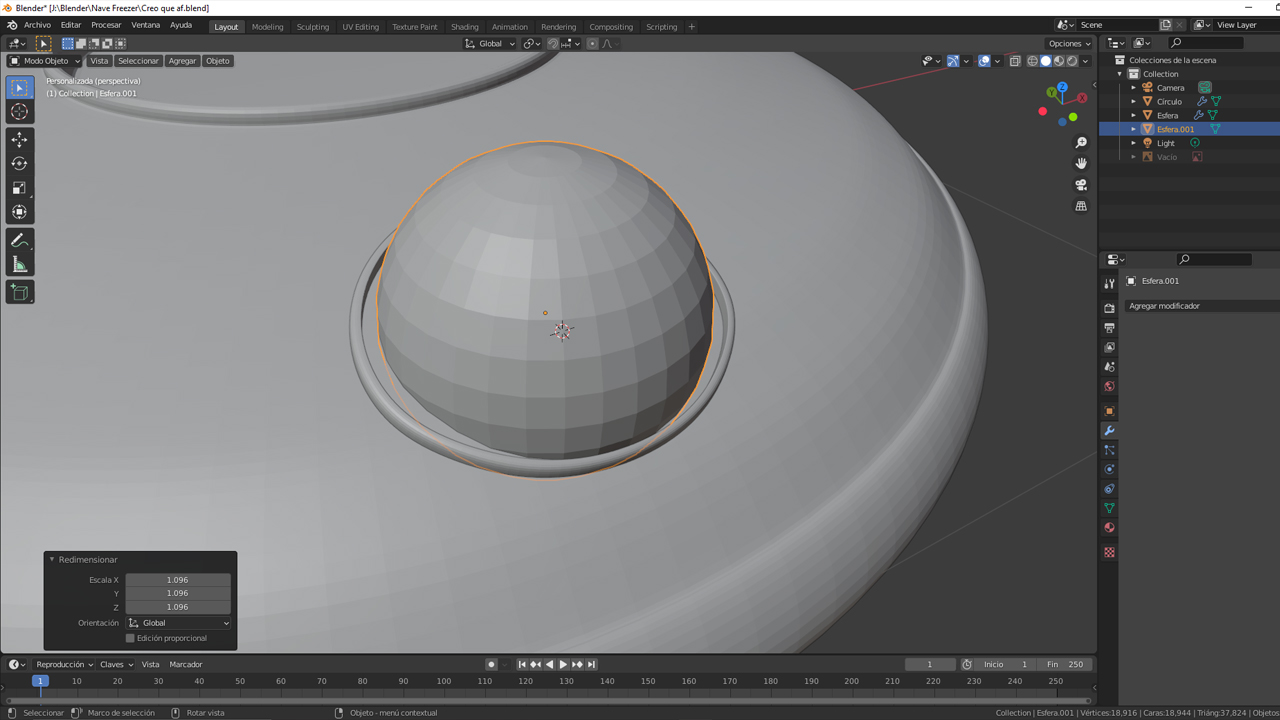 Me gustaría hacer un marco como el de la primera fotografía, he probado a hacerlo con "diferencia" restando la esfera al cuerpo, el cual me funcionó en el primer intento seleccionando después la circunferencia con shift y extruyendo vértices.