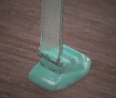 Te ha quedado muy bien, no solo el fluido que cae, sino, también el que hay sobre la mesa, ver cómo se va acumulando y tomando forma.