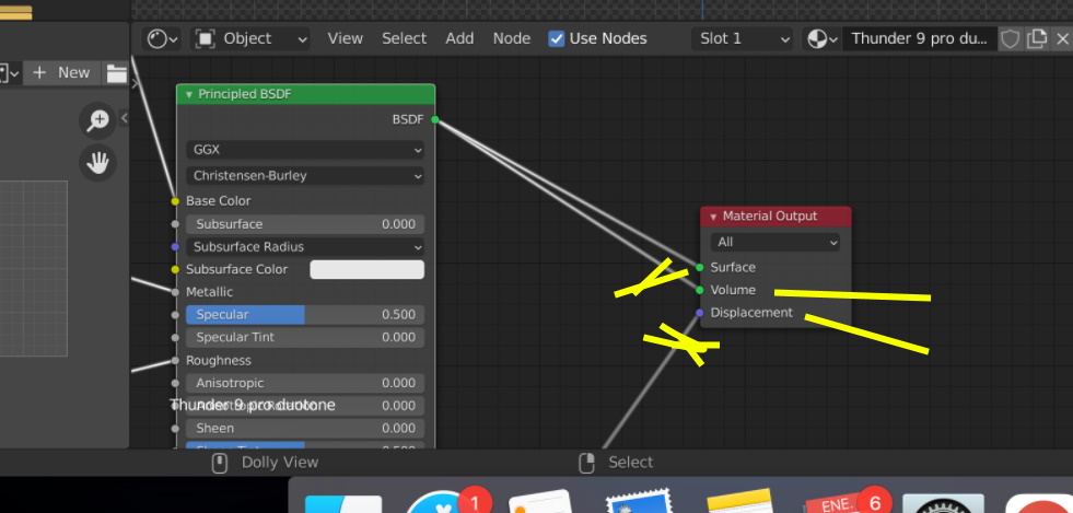 Lo curioso es que tengo activo en "Material Output" la opción "All". Adjunto pantallazo de cómo se ve en Eevee y cómo se ve en Cycles, también adjunto la configuración del material por si alguien puede observarlo y me puede ayudar.