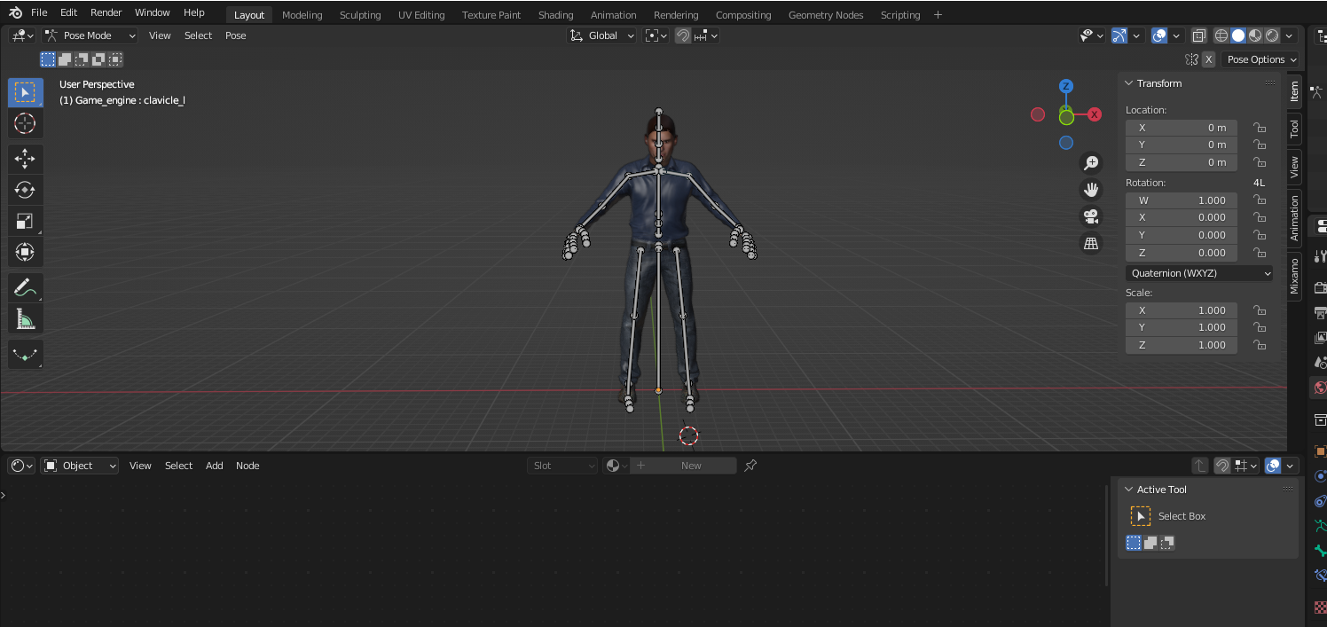 Ahora mismo estoy en conflicto porque toda la estructura de mi personaje con el esqueleto, cuando en modo objeto, y reset position, uniendolos con Parent/ Armature Deform with automatic weights para supuestamente unir todos los elementos, y cuando paso a pose position el esqueleto queda en el eje del modo Pose position pero la estructura del cuerpo del personaje sigue en el eje de Reset Position.