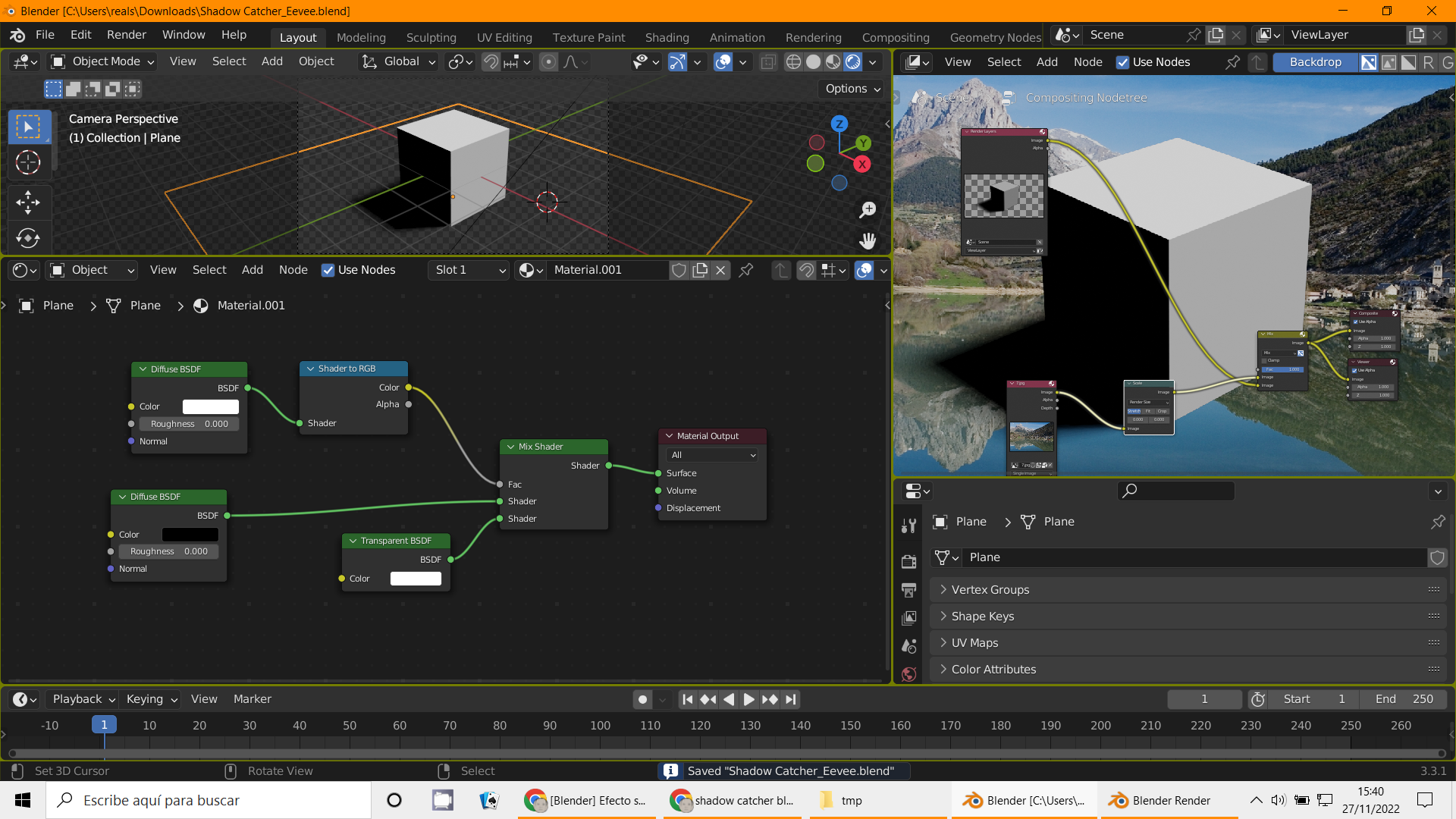 Antes de la versión 2.80 había la opción en materiales de renderizar solo la sombra que recibía un objeto.