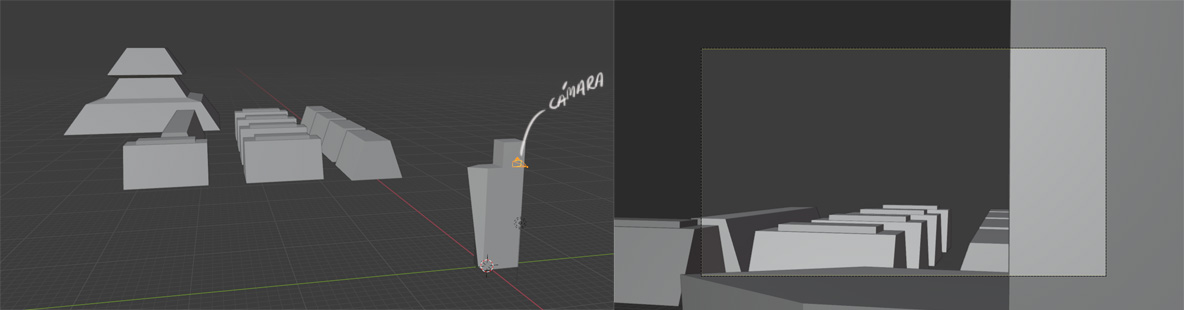Tengo mi modelado, y mi cámara posicionada. Cuando activo la cámara (0) no puedo visualizar todos los objetos. Los que están más al fondo desaparecen.