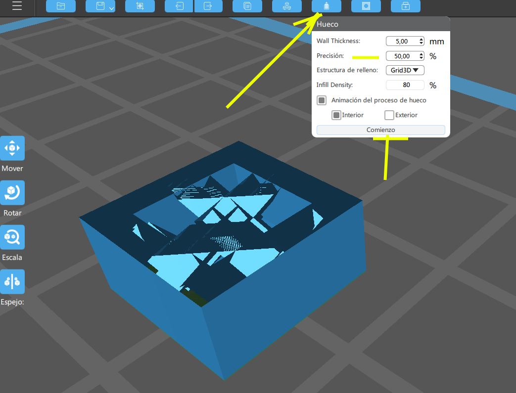 Hola, tengo un diseño hueco y me gustaría rellenarlo ya que al imprimir en un tamaño relativamente pequeño quiebra fácilmente. He visto un par de consejos pero al ser una impresora de resina no me han servido o no he sabido muy bien cómo aplicarlo.