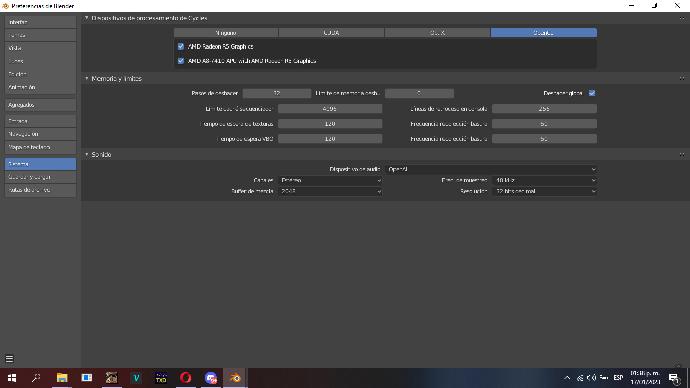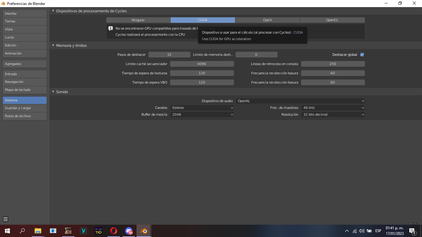 Aquí estoy en el apartado de openCL pero nose claramente esto es que soy nuevo usando este programa que no se nada.
