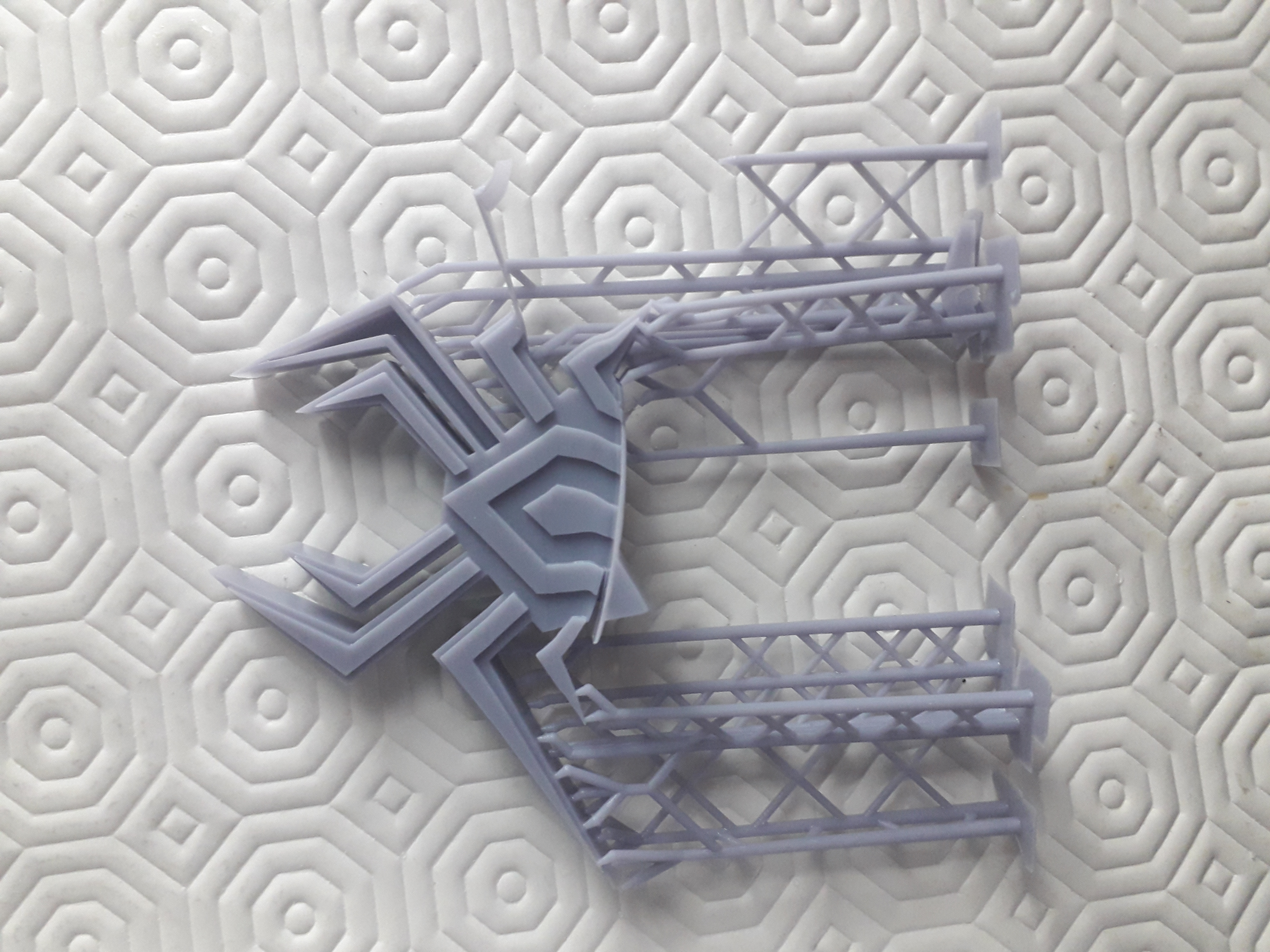 El problema es que todas las impresiones salen con errores: las piezas pueden estar cortadas por la mitad, deformadas o incluso ni siquiera salir. Al principio, pensé que el problema podría ser el archivo exportado, pero probé con distintos archivos y el problema persistió. Además, de un mismo archivo, salían impresiones defectuosas diferentes: si en la primera impresión la pierna derecha de la figura salía mal, en la segunda impresión era la pierna izquierda la que salía mal y la derecha salía bien. Incluso he probado con diferentes escalas y rotaciones y solo una impresión muy pequeña salió bien, como se puede ver en las fotos que adjuntaré al final.