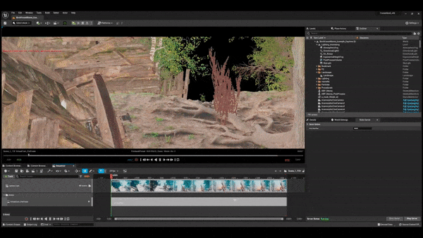 El equipo trabajó en un proyecto sin fines de lucro y necesitaba obtener el máximo resultado en poco tiempo. Utilizaron productos de MAWI, Dviz, Quixel y Sketchfab para crear el entorno y seleccionar modelos fotorrealistas. Personalizaron los activos para evitar FPS bajos y bloqueos inesperados. Los árboles en Unreal Engine no funcionan perfectamente, por lo que tuvieron especial cuidado en explotarlos con cinematografía y posiciones de cámara. También modelaron activos específicos desde cero en Blender, como las estatuillas de bronce que aparecen al principio.
