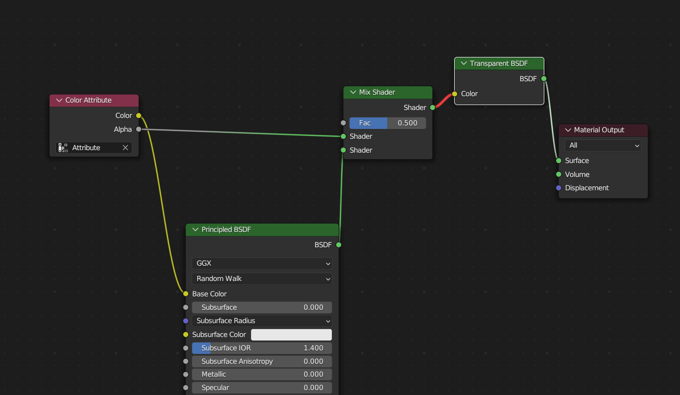 Incapaz de mezclar un vertex color y un alpha en un material que no pase por BSDF