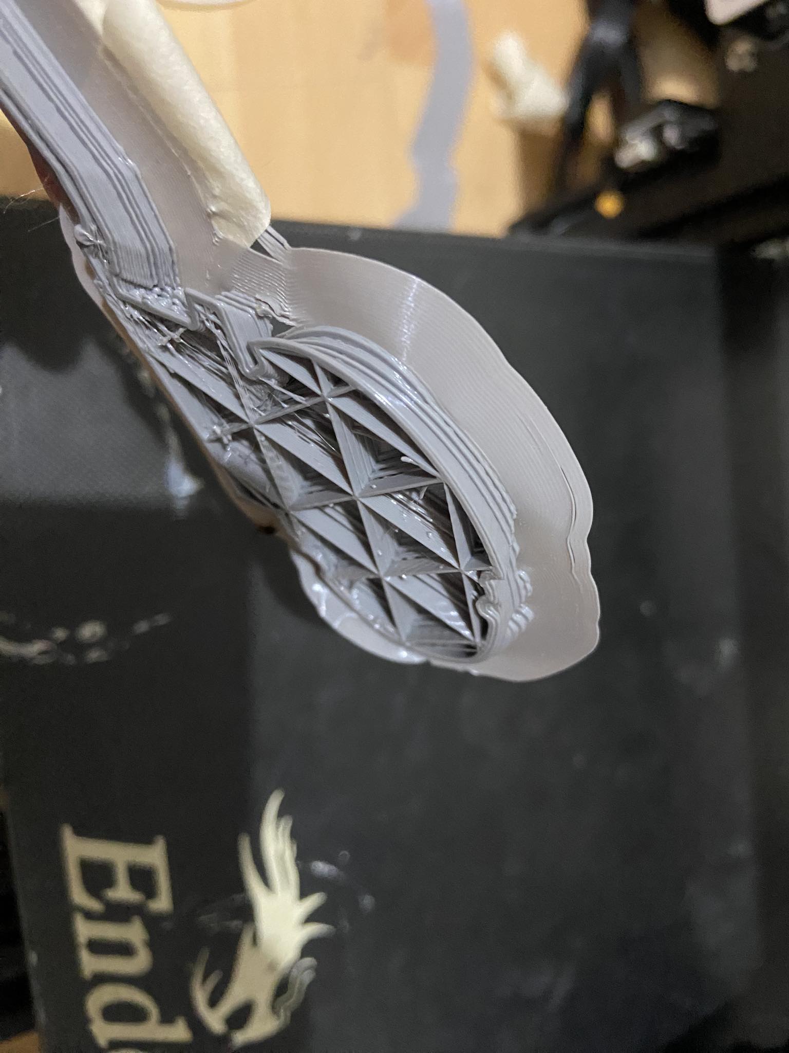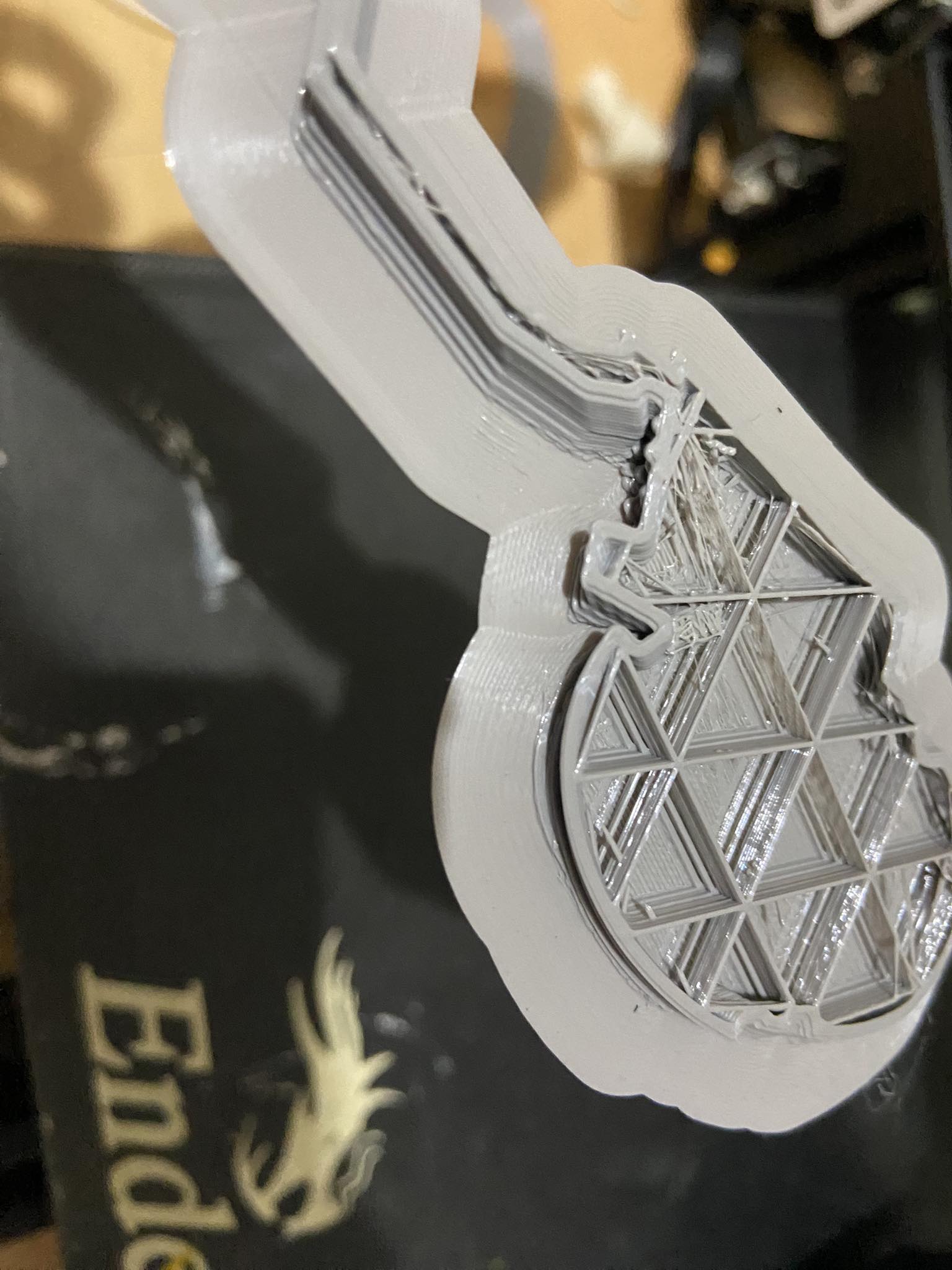 Hola buen día, tuve un problema con mi Ender Max. Ya llevo como 2 años con ella. El problema es que se dañó el termistor y un conocido me ayudó cambiándolo. El punto es que, cuando la puse a imprimir, comenzó a desplazar capas. Asumí que era la conexión por el voltaje de esa zona que no le llegaba bien, y la puse a imprimir. Imprimió así: