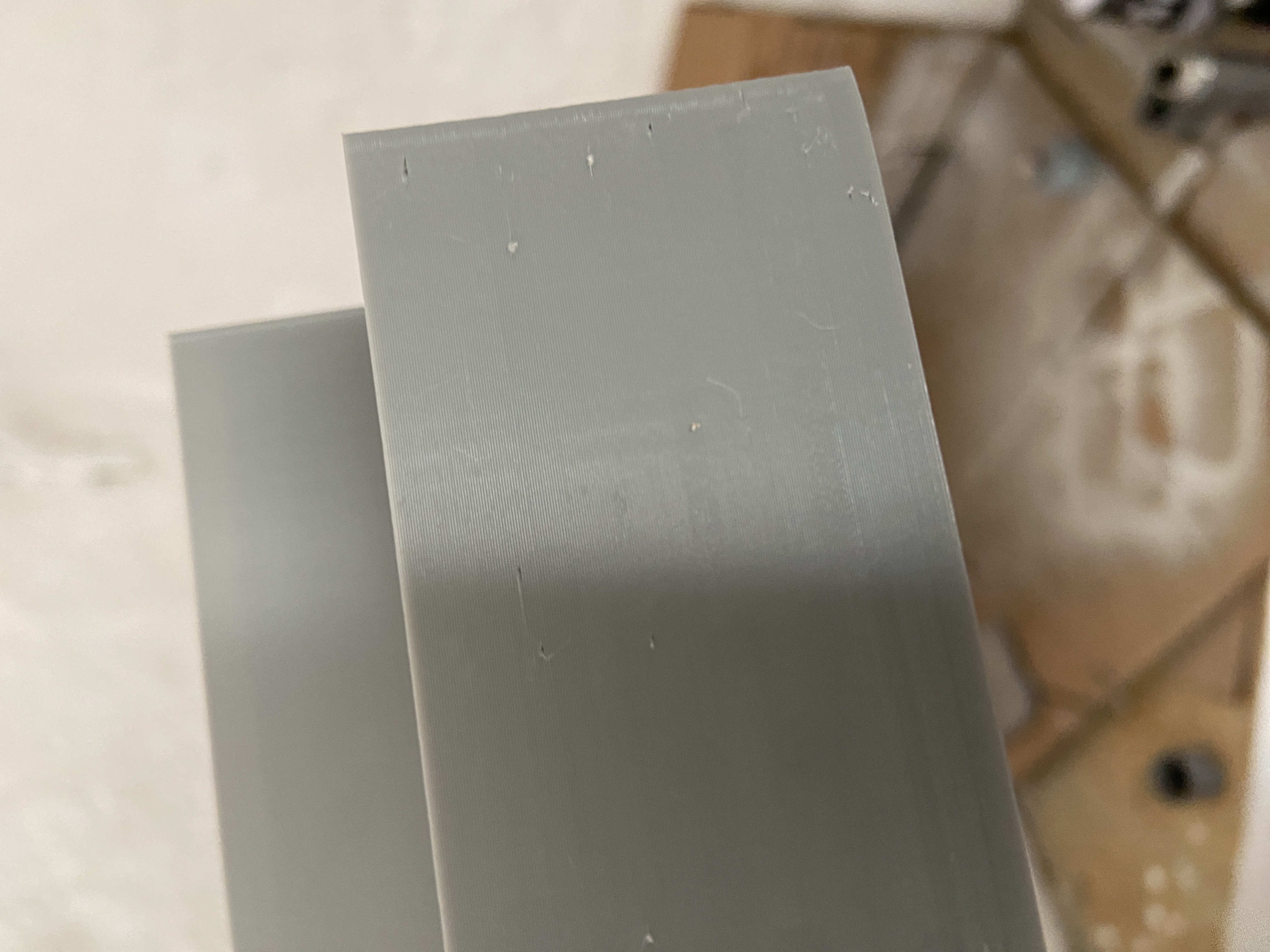Hola a todos, os dejo 2 fotos correspondientes a dos piezas similares que saqué. Sin impresiones de un formato grande y en una, a 0.4 de altura de capa, se observa un cracking, sin embargo, a una resolución de 0.2 no hay cracking.