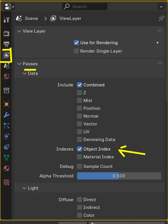 Luego solo hay que activar la opción de "Object Index" para luego en el COMPOSITOR con el "ID Mask" hacer la selección del Objeto que queremos desenfocar.