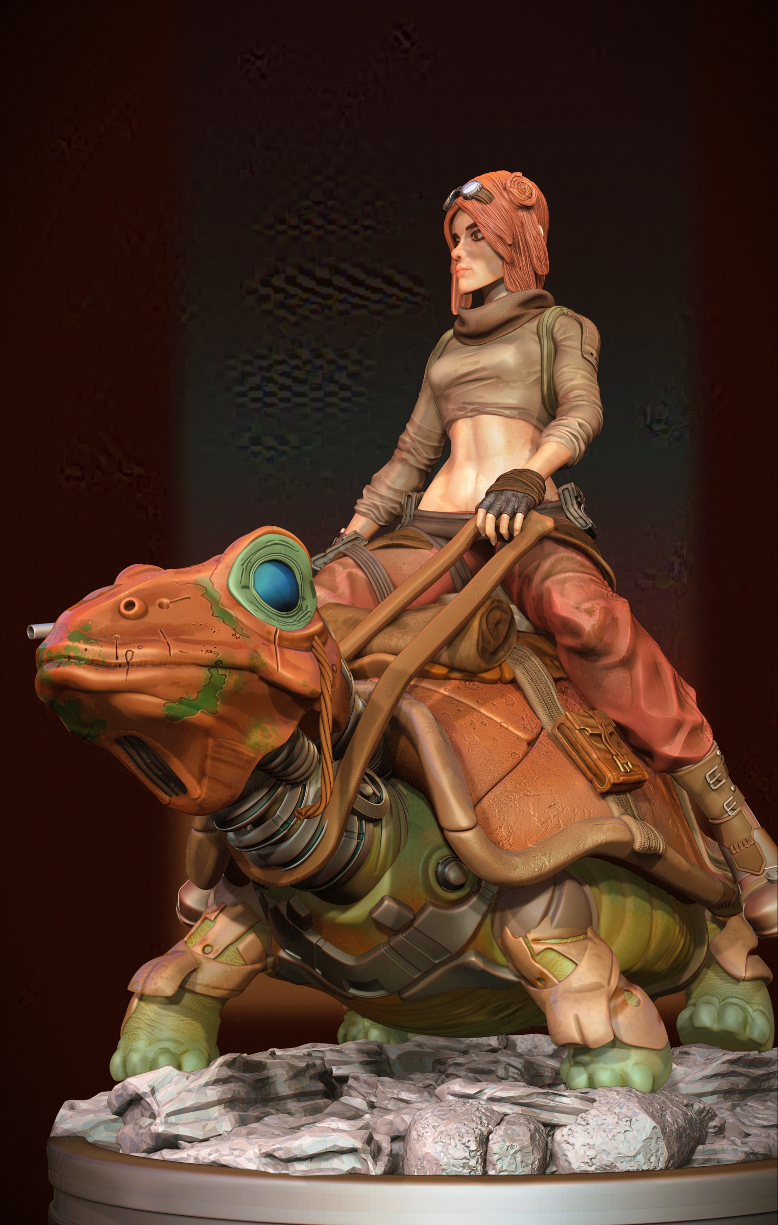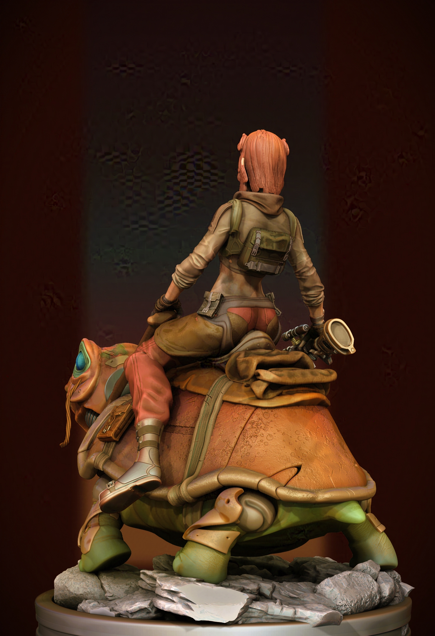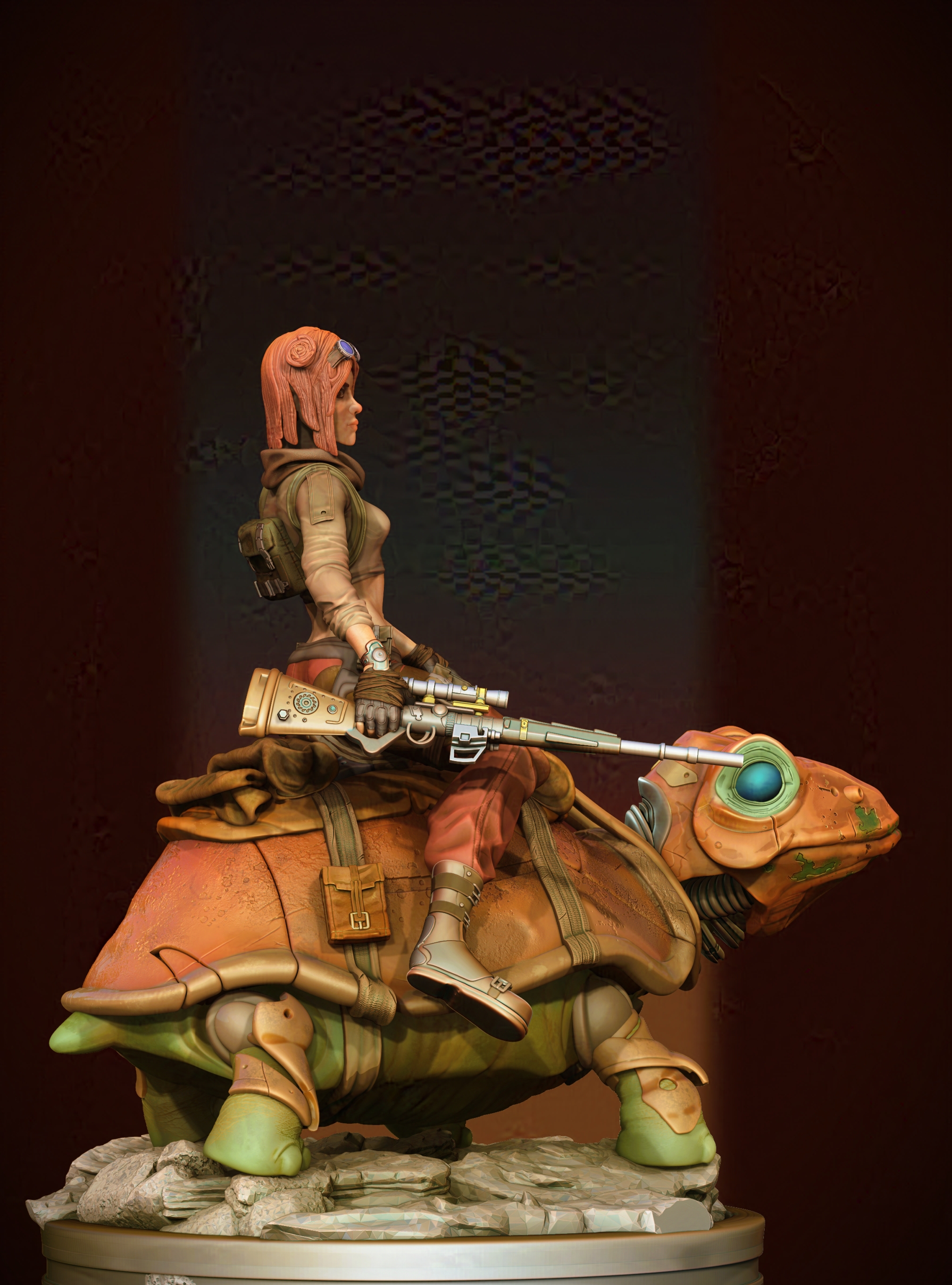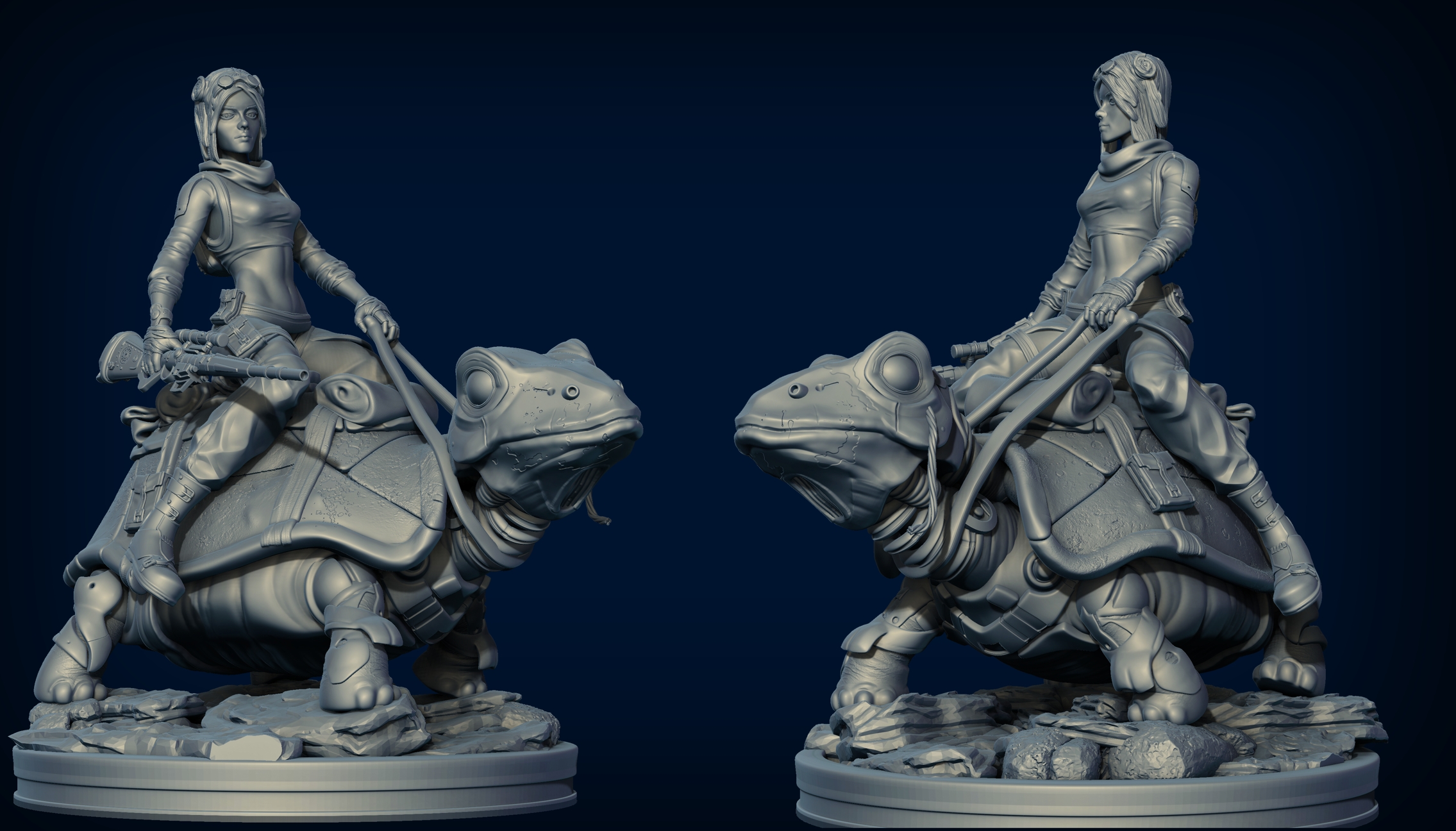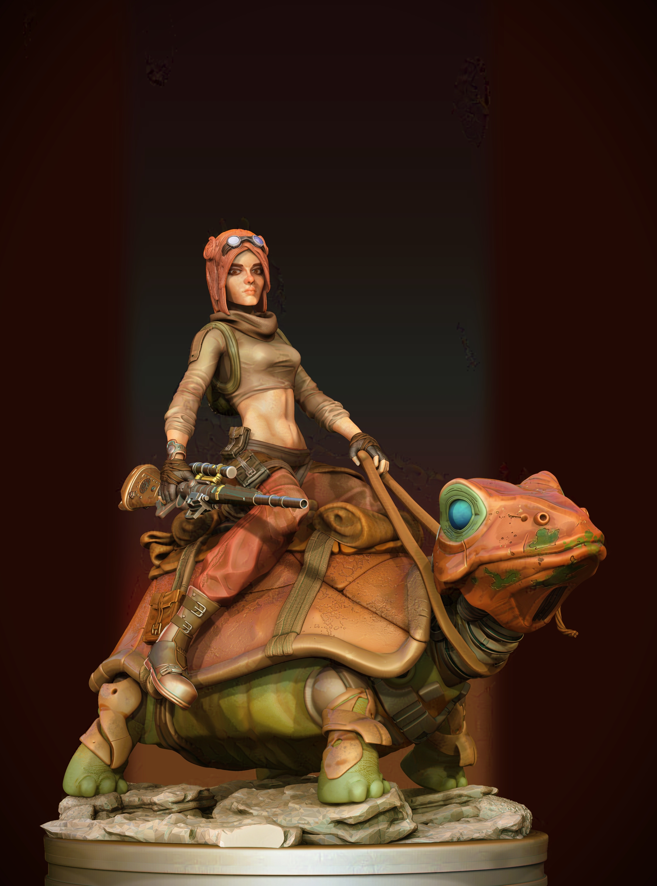 Todo el modelado, posado de personajes, render y composición final fue realizado en Zbrush, el uso de Krita solo para añadir el pase de sombras, oclusión y fondo de gradiente.
