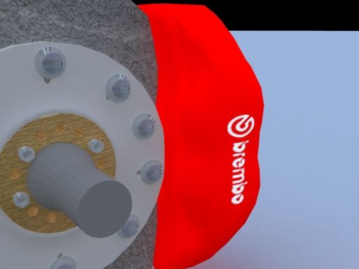 Hola, a ver, quisiera saber si alguien podría indicarme cómo hacer que todo este conjunto que aquí se ve, parezca metálico todo, sobre todo me interesaría más que nada la pinza del freno, que tenga aspecto metálico y que no tenga ese rojo tan brillante que te deja los ojos pegaos a la pantalla cuando lo ves, es que parece plastilina y quiero que cuando uno lo vea la sensación que de sea de hierro, duro y a ver si también fuera posible para el resto del freno, para el disco y sus partes, pero vaya que, con la pinza me conformaría, un saludo y hasta pronto, posdata: uso 3d Studio Max 7 y esta renderizado con Brazil.