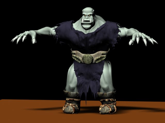 Qtal. Ya le he puesto ropa a mi orco indecente (desnudo), se nota que no soy muy bueno en esto de la ropa en personajes y me falta mucho, sobre todo en máquina porque se me cuelga mi comp. Cuando quiero hacer la simulación de Cloth y rigid bodies.