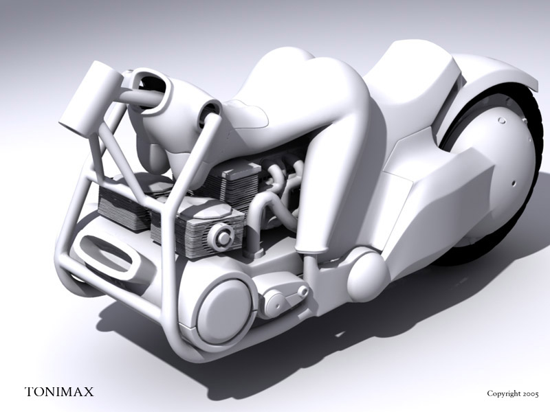 Hola a todos/as es la primera vez que me meto en un foro 3d. Me gustaría enseñaros unos de mis trabajos acabados, la wo_machine. He diseñado esta moto basándome en el cuerpo de una mujer, mucho de vosotros/as ya habréis visto algo parecido por internet, que puedo decir en mí defensa, que es pura coincidencia. Saludos.