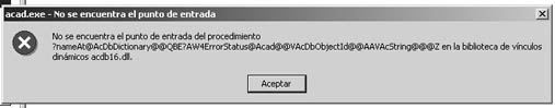 Hola a todos. Instalé el AutoCAD 2006, y cuando lo voy a abrir me sale un error y no puedo abrirlo. El error es de no se encuentra el punto de entrada, para más detalles ver archivo adjunto.