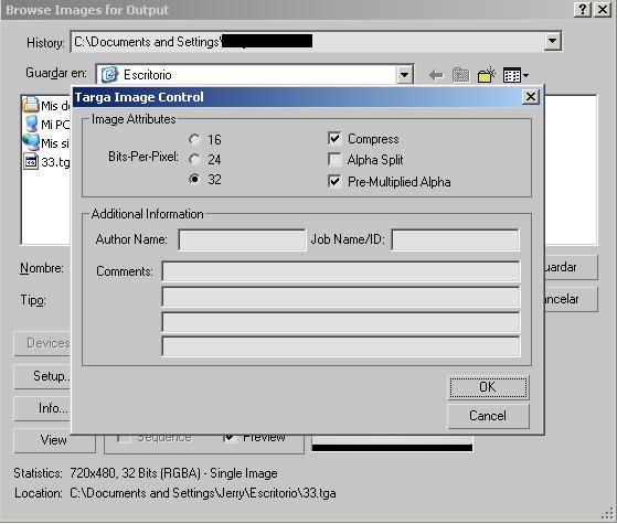 Ya encontré el problema la cosa era de que estaba mal configurado la forma de cómo guardaba el (*.tga), esta es la configuración buena.