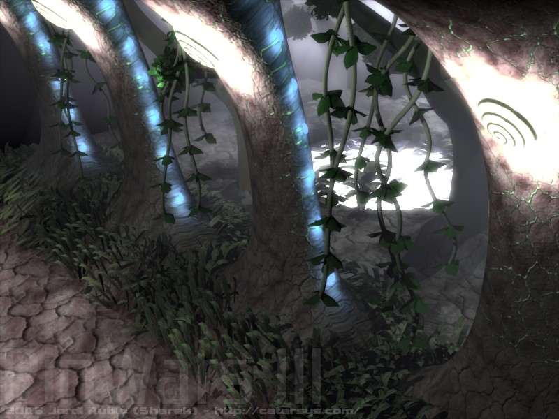 Porque tantas zonas quemadas? Considero que deberías rebajarle muchísima luminosidad a esas zonas, tanto en las columnas como en la zona de atrás. Intenta no tener nunca blanco puro (ni negro puro) en las imágenes, ya que en el espectador causa distracción u otros efectos no deseados.