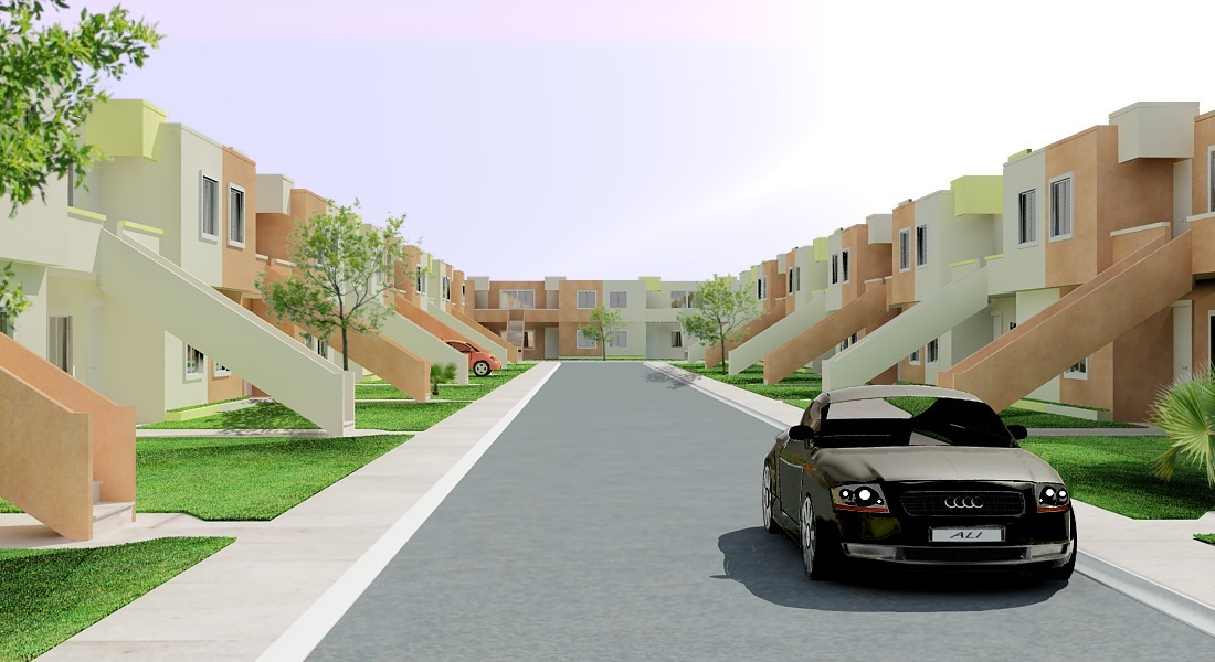 Aquí en México son muy comunes este tipo de unidades, así repetitivas como la ven, son viviendas de interés social. Hecho en 3dsmax 7 con Vray un poco de cp12.