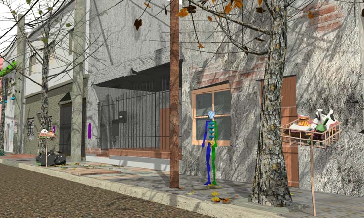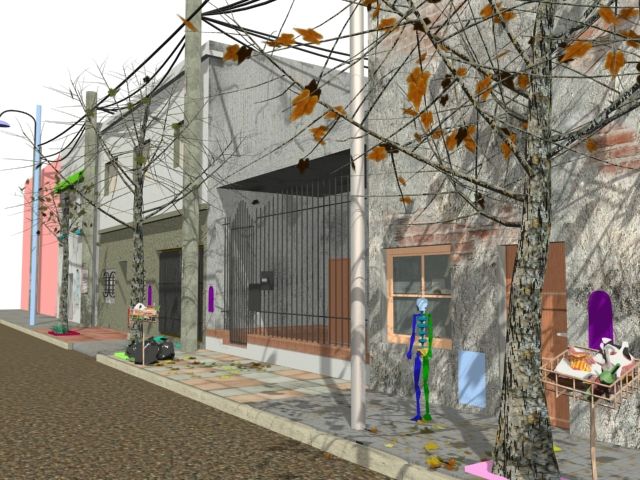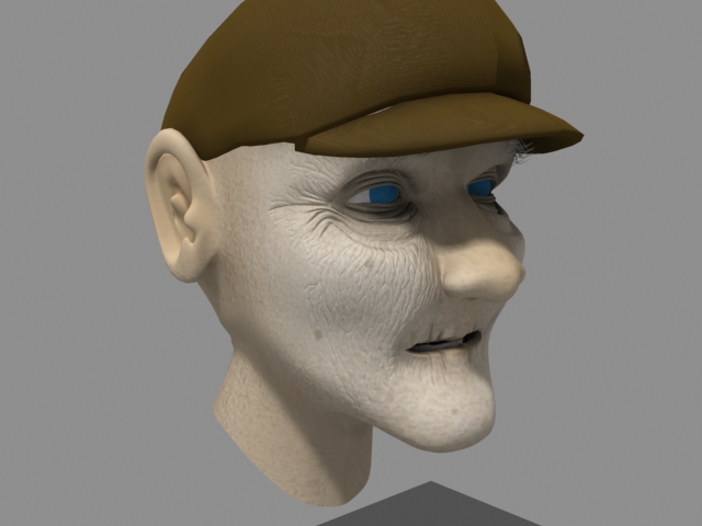 Bueno, castan otros escenarios. La iluminación es prueba nada más, nada serio. Desgraciadamente solo me queda 1 mes para entregar todo, y ni siquiera comencé a animar así que, todo lo que está es lo que va a estar, un embole. Al menos ya comencé con wel personaje que tiene que ser un viejo tipo 70 años. Llegue al resultado del render, siguiendo el tutorial de secondreality. El problema que tengo son las arrugas, ya que le quiero modelar algunas, y otras serán por Bump. Alguien tiene alguna técnica especifica sobre cómo hacerle arrugas sin armar un quilombo con el Mesh?