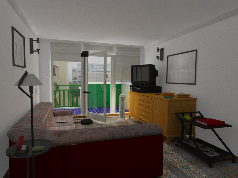 Veo en general bastante correcto el render final. Quizás no me convence mucho la textura del mueble que está a la derecha. Otro detalle serían los dos cuadros, a esa distancia debería poderse ver su motivo.