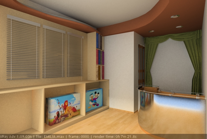 Soy nuevo en este foro y gracias por la bienvenida, aquí pongo este render para que los critique y me ayuden a mejorarlo, también pueden sugerir mejor combinación de colores, a, olvídense del Bump en paredes ya que serán todos empastadas y/o pintadas al duco, gracias de antemano. La elección de colores podemos variarlas sin problemas, a ver cómo vamos es mi primer mensajes.