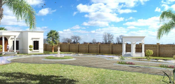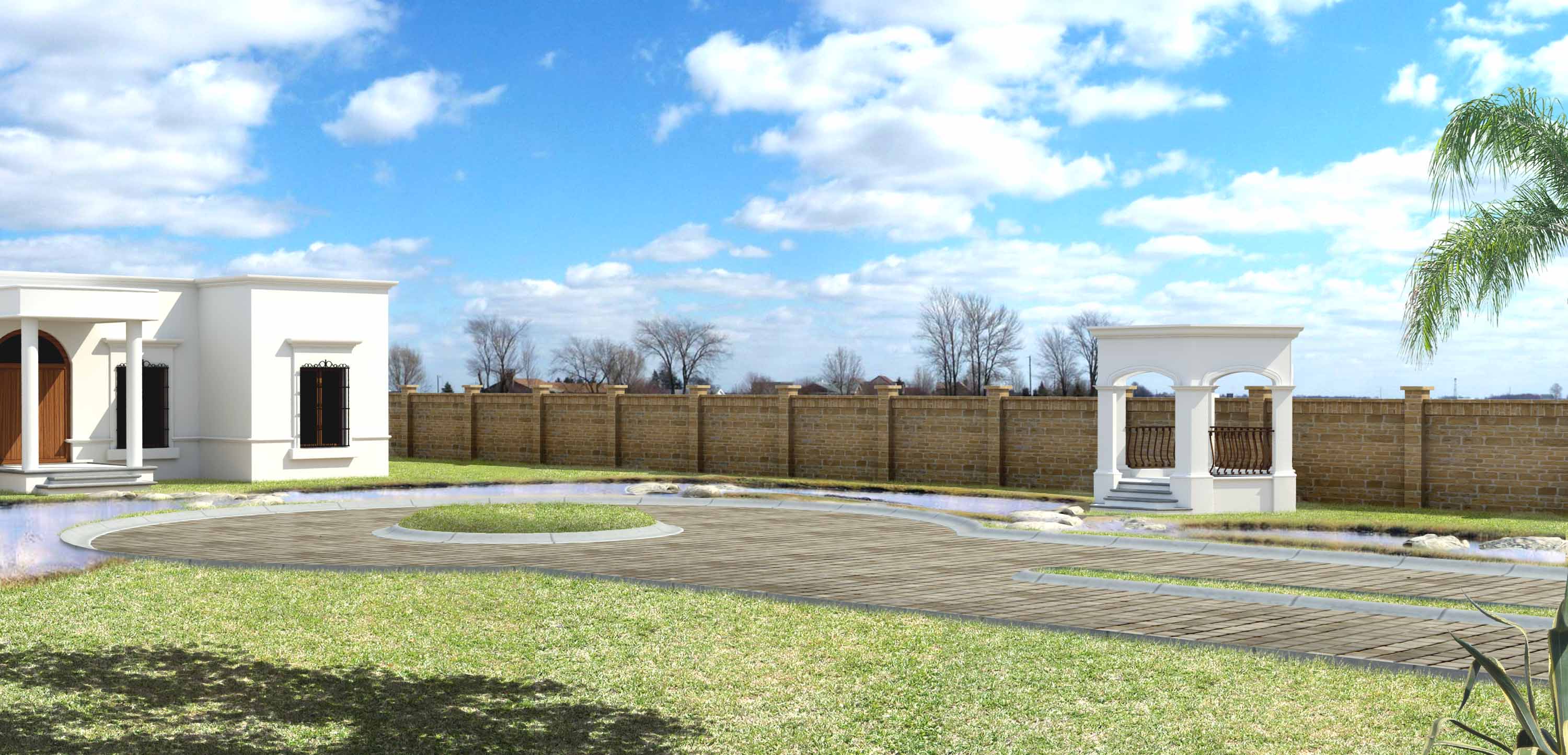 Coincido con Bruixot, yo además, le añadiría una fuente en la circunferencia de césped (las típicas fuentes de patio interior andaluzas).