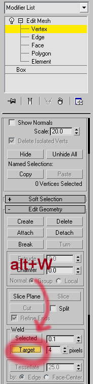 Bueno menuda pregunta, pero me vuelve loco, yo estoy acostumbrado a maximizar los viewports con Alt+W, pero cuando tengo acticvado el edit Mesh, no c porque razón Alt+W activa en editgeometry/weld el target del edit Mesh (adjunto imagen) no lo entiendo, porque en otra máquina no sucede eso, debo suponer que hay que activar algo más, no c si alguien sabe de eso.
