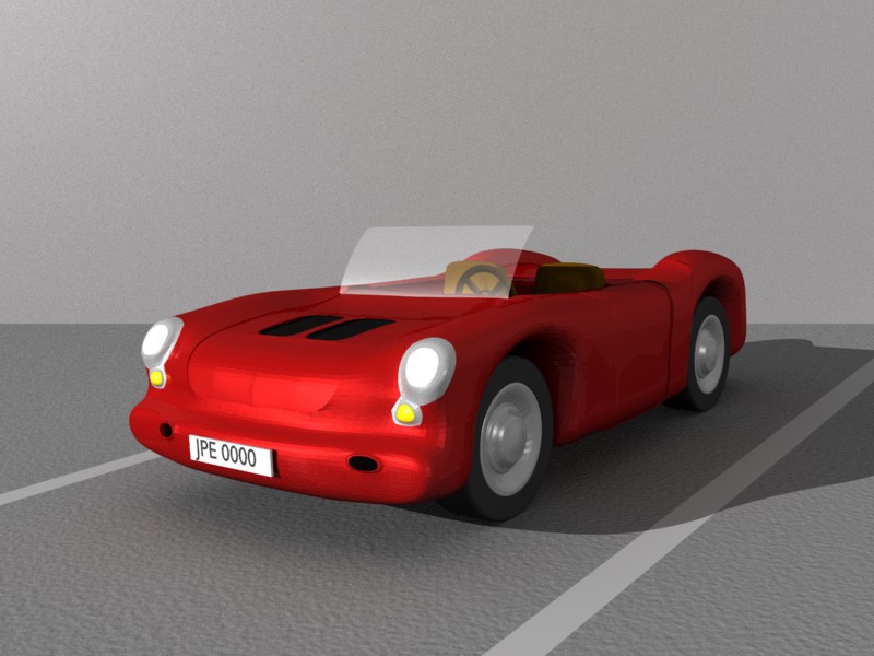 Buenas, aquí os dejo un coche que hice ayer para que comentéis que tal esta etc. Seguí unos blueprints de este coche. Blender+Yafray.