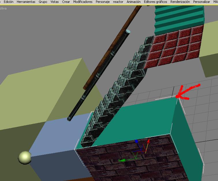 No os cabreis conmigo por favor, quizás sea una pregunta sin sustancia para muchos de vosotros: en la imagen del modelo que adjunto no sé cómo mover el punto de pivote (de la caja con textura de ladrillos) a donde indica la flecha, es necesario para girar la meseta.