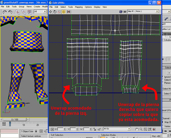 Hola, mi consulta es la siguiente, Unwrapeado un personaje, acomodo una de las piernas, la izquierda y como las dos van a tener la misma textura quiero colocar la pierna derecha exactamente arriba de la otra. Probé de copiar la que ya está acomodada, y pegarla sobre la otra, pero me modifica el Unwrap.