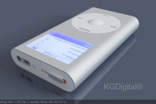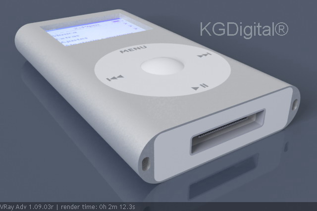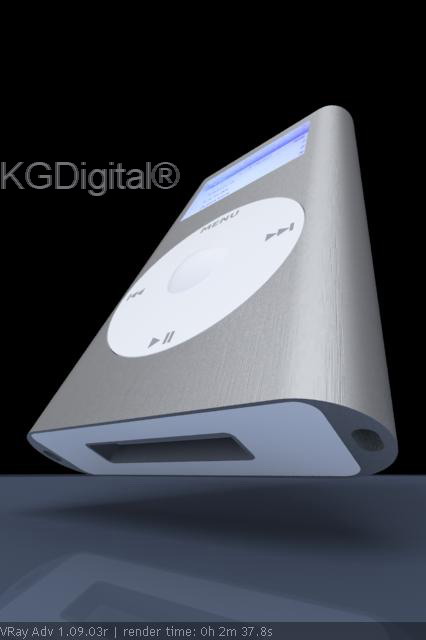 Si tienes razón, en la primera fotografía salió así porque se me olvidó quitar un Bump map que había puesto como prueba, de resto salen así puesto que el mini IPod que tengo tiene la carcaza metálica y no plástica, creo que es de aluminio cepillado, pero no rayado, como aluminio con pintura escarchada o una cosa así.