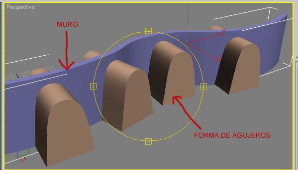 1º trate de hacerlo con boleanas, pero la operación me dejo echa un asco la malla, y luego ni siquiera puedo editarla como, por ejemplo, para ir variando la altura del muro en algunas seciones a nivel de la cornisa.