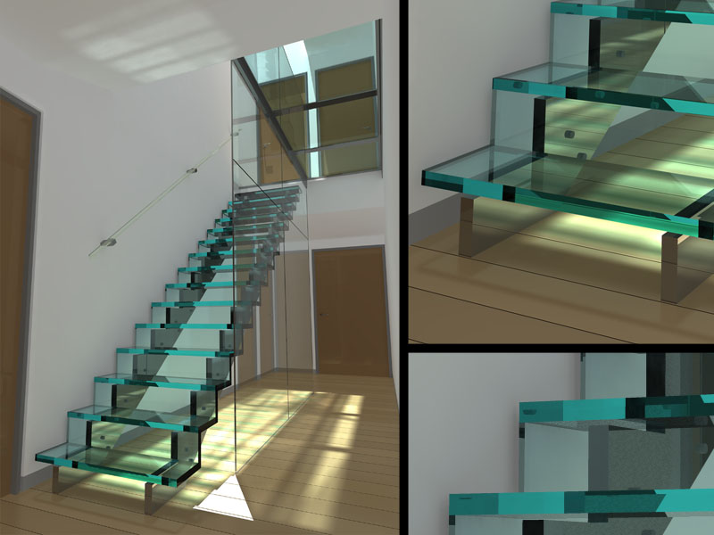 Finalmente el quinto es una escalera muy fashion de vidrio, renderizada con Mental Ray.